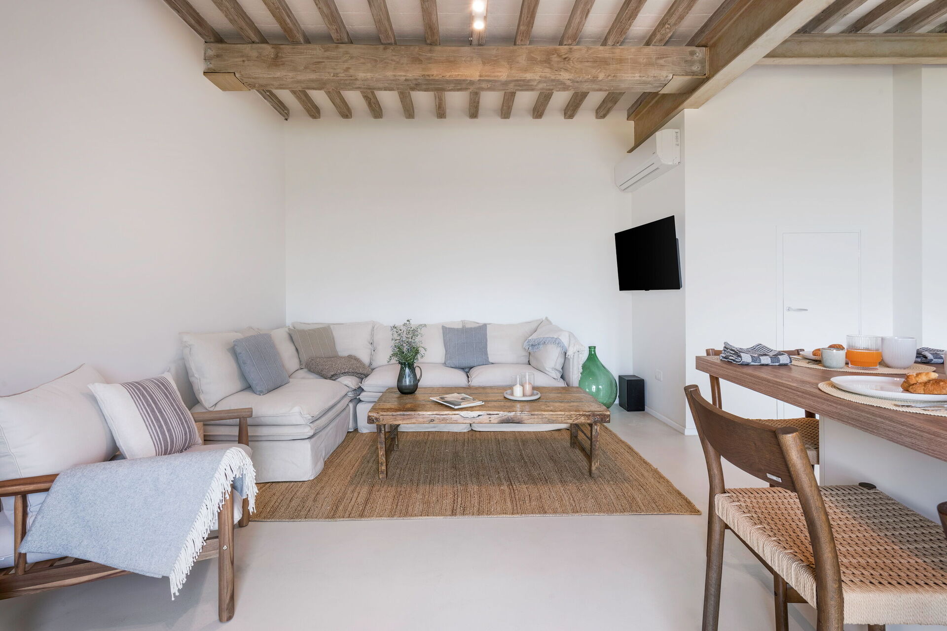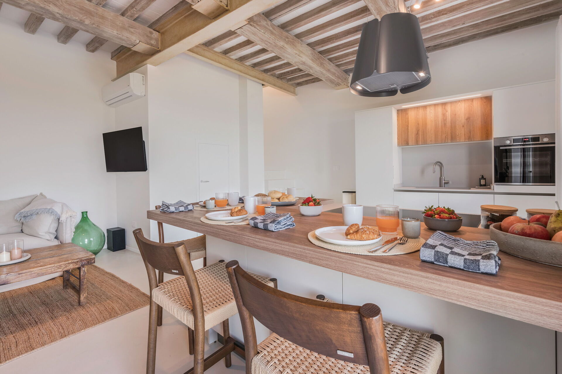 Køkken - stue: veludstyret køkken, spisebord, opvaskemaskine, køleskab, fryser, mikroovn, kogeplader, ovn, italiensk kaffemaskine, WIFI internet, klimaanlæg, tv, udgang til have.