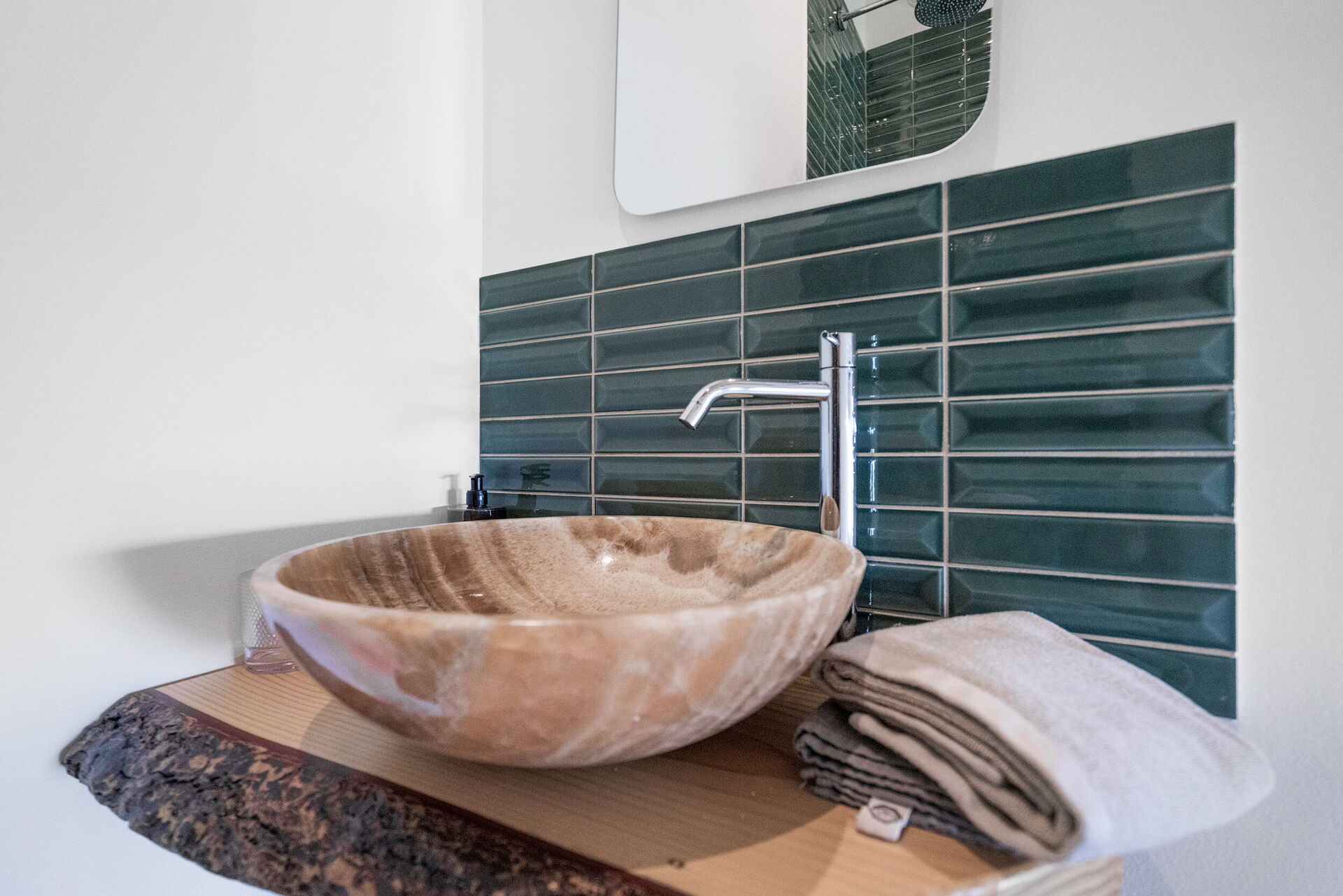Soveværelse med bad: dobbeltseng, WIFI internet, klimaanlæg, vask, bruser.