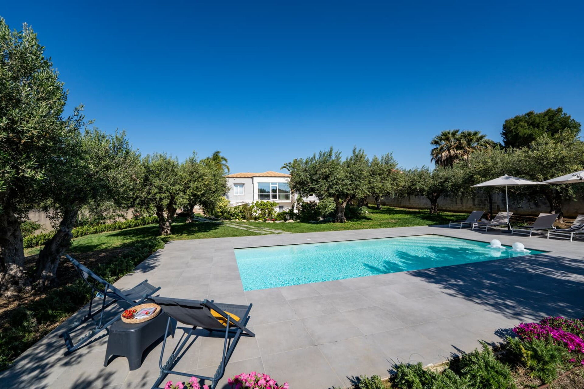 Beliggende i en stor have tilbyder villaen en smuk pool og en udendørs spiseplads på verandaen – ideel til at nyde en cocktail eller middag på sommeraftener.