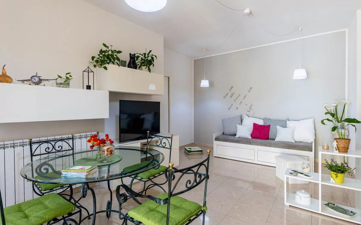 "CaLella", 2-værelse-lejlighed 70 m2 i 1. etage. Pæn og hyggeligt indrettet: stue/spisestue med 2 senge (90 cm, længde 200 cm), TV. 1 dobbeltværelse. Udgang til altan. Kogeniche (ovn, opvaskemaskine, 4 gasblus, Brødrister, kedel). Udgang til altan. Bad/bidet/WC. Gas-opvarming. Opvarme kun tilgængelig fra 01.11. til 15.04. Altan. Altanmøbler. Udsigt over byen. Til benyttelse: vaskemaskine, tørretumbler, barneseng til 2 år, hårtørrer. Internet (trådløs LAN [WLAN], gratis). Bemærk venligst: maksimum 1 husdyr/hund tilladt. Brandalarm, brandslukker. IT008011B43IJL8NFI