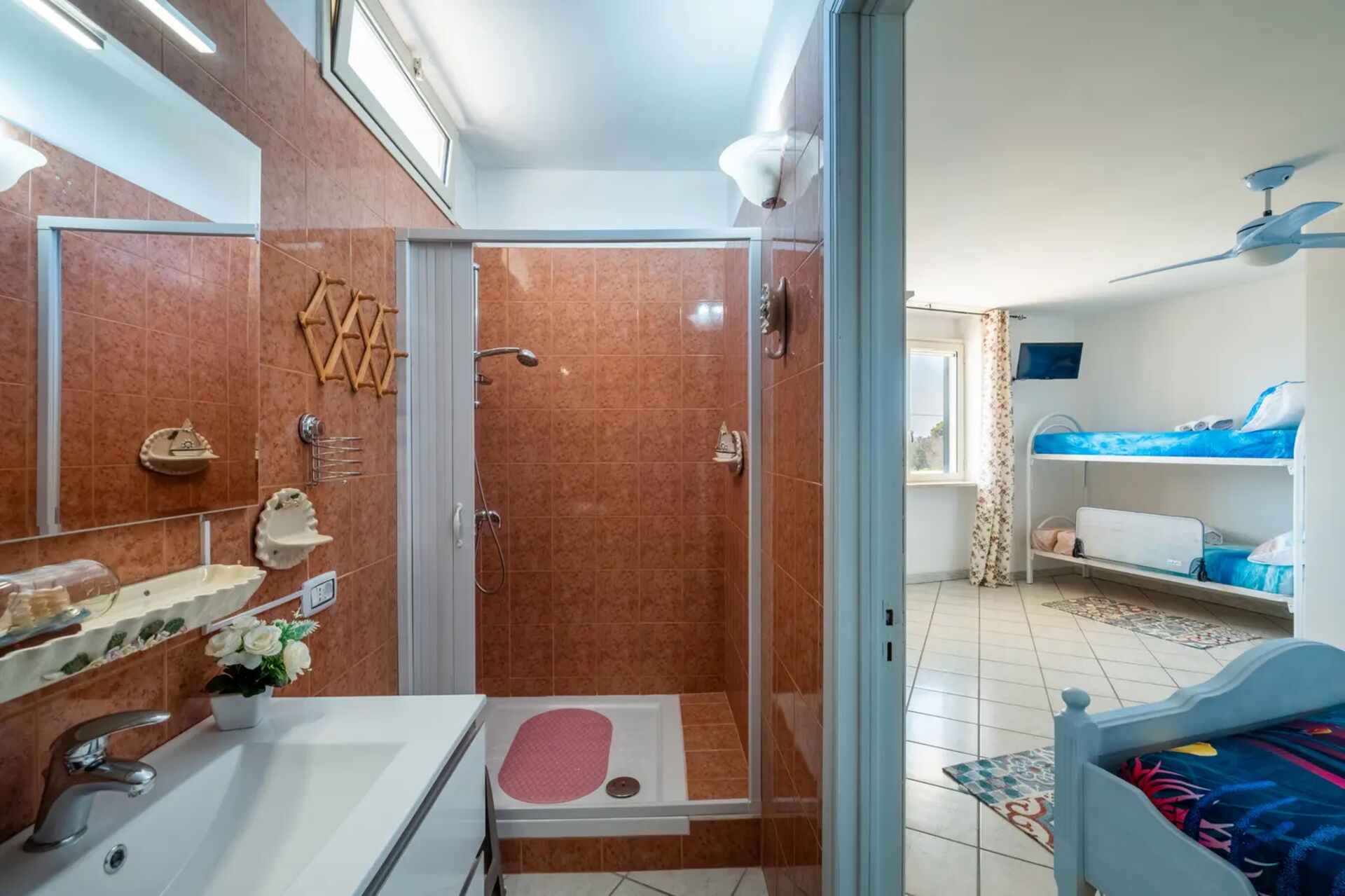 Soveværelse: dobbeltseng, køjeseng, WIFI internet, tv, loftsventilator.
