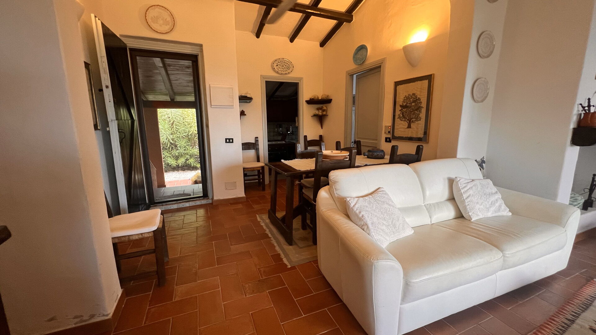 Ved ankomst vil I møde en skøn ren velholdt ejendom med udsigt over havet perfekt til fredelig ferie i Sardinien. Uanset hvordan I tilbringer dagene - med sightseeing, museumsbesøg, shopping eller bare ved at køre rundt på landet, så kan I slappe af med familie og venner ved poolen, når I kommer hjem, hvilket er en perfekt måde at afslutte endnu en dejlig dag på i Sardinien. At spise med venner og familie er en kæmpe del af den italienske kultur. Benyt det velekviperede køkken til madlavning med lokale produkter, når du er på ferie. Køkkenet indeholder kaffemaskine, mikroovn, komfur og køleskab, samt, masser af service og bestik til op til seks personer.