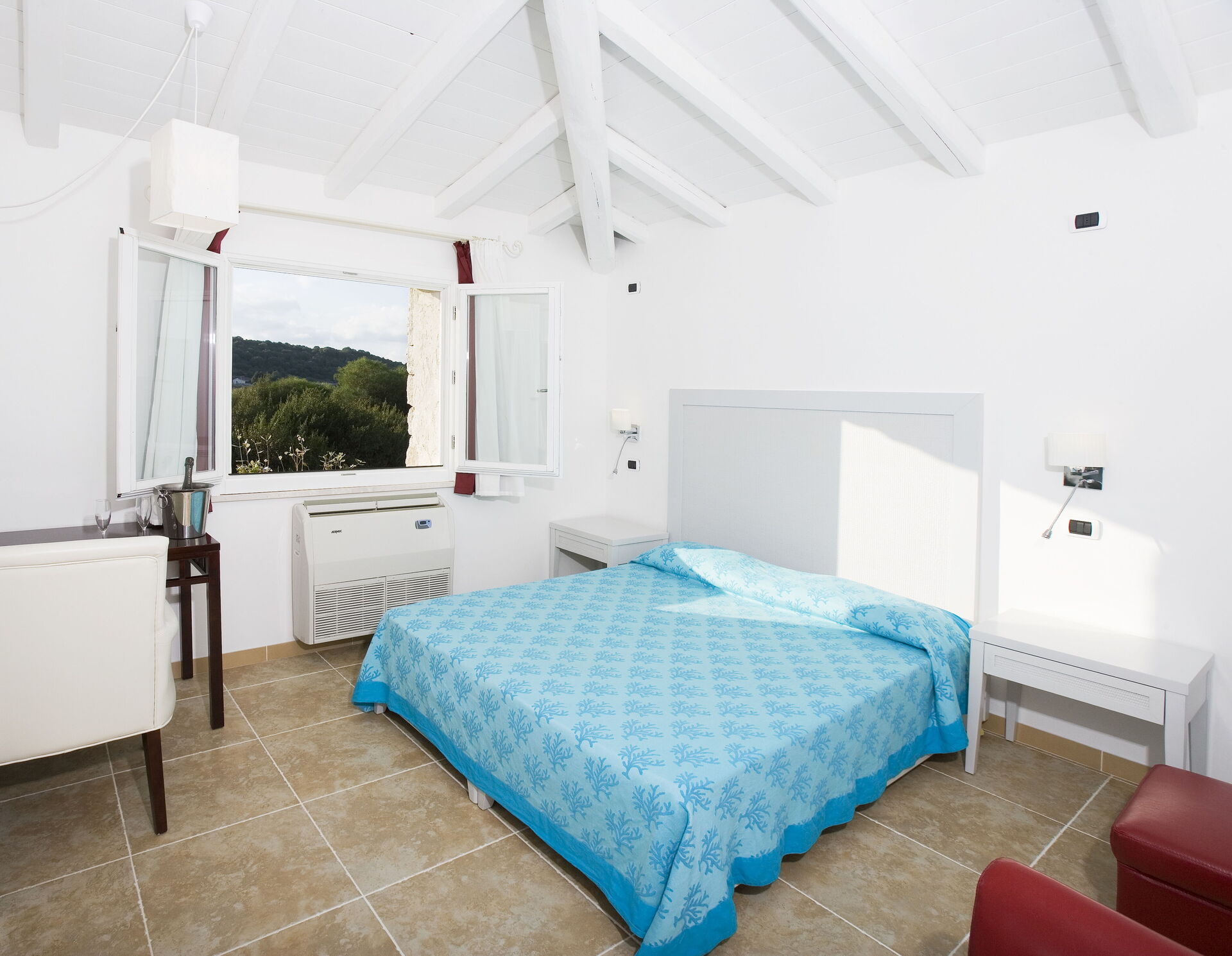One of the villa's three bedrooms has a private bathroom, while the other two share the bathroom on the floor.