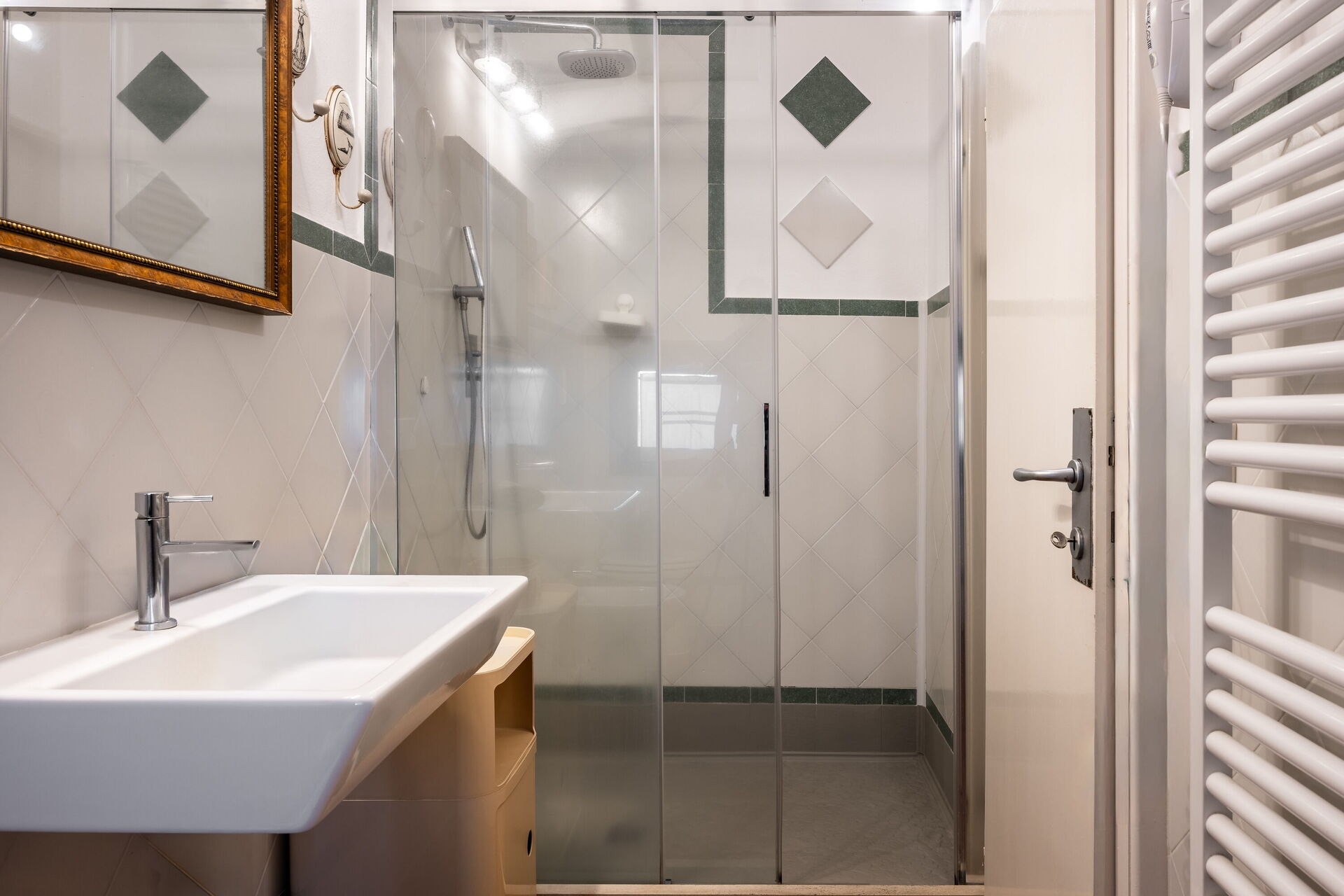 Soveværelse med bad 1: dobbeltseng, WIFI internet, klimaanlæg, tv, køleskab, vask, wc, bidet, bruser, hårtørrer.