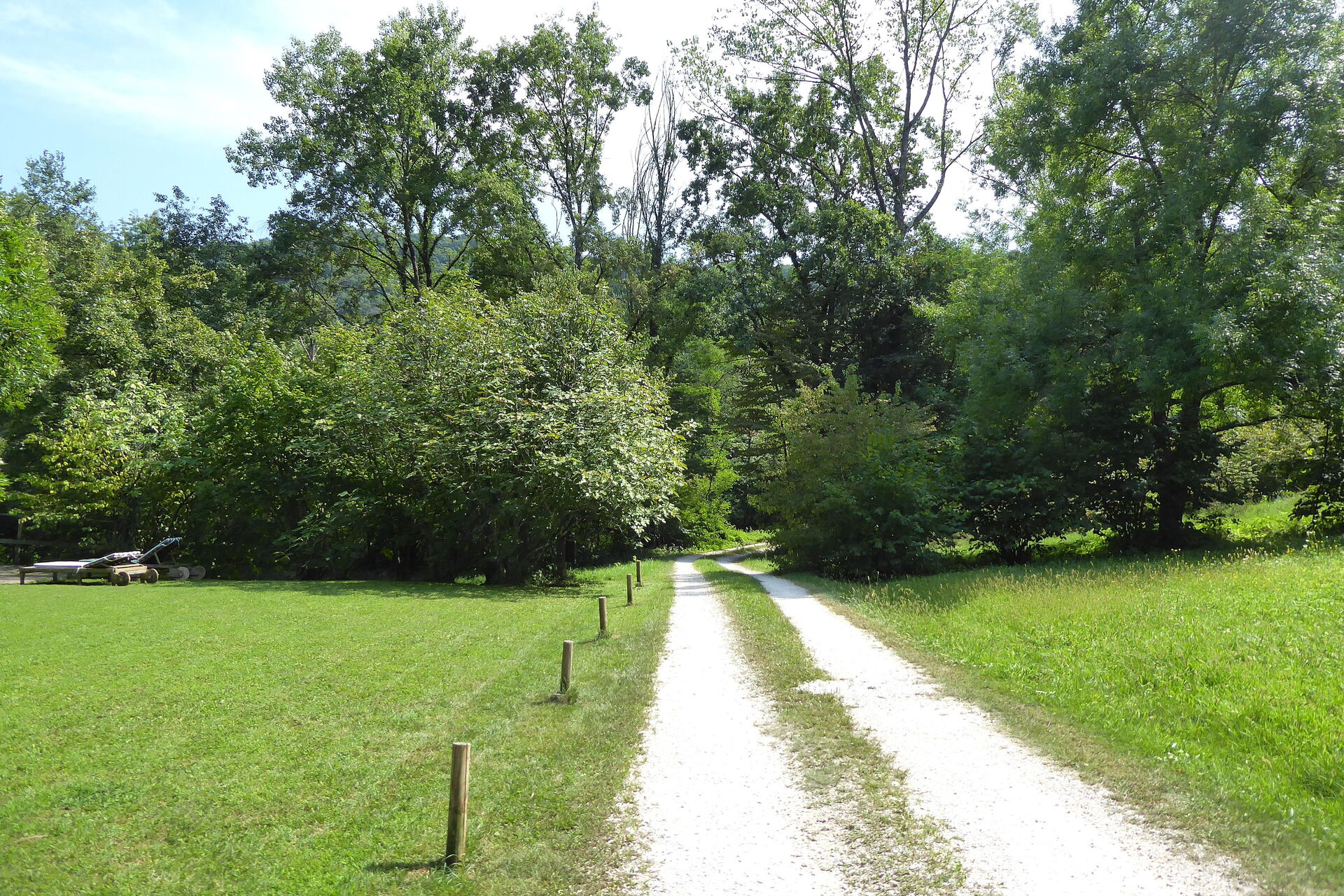 Adgangen sker via en 300 meter lang grusvej gennem vegetationen.