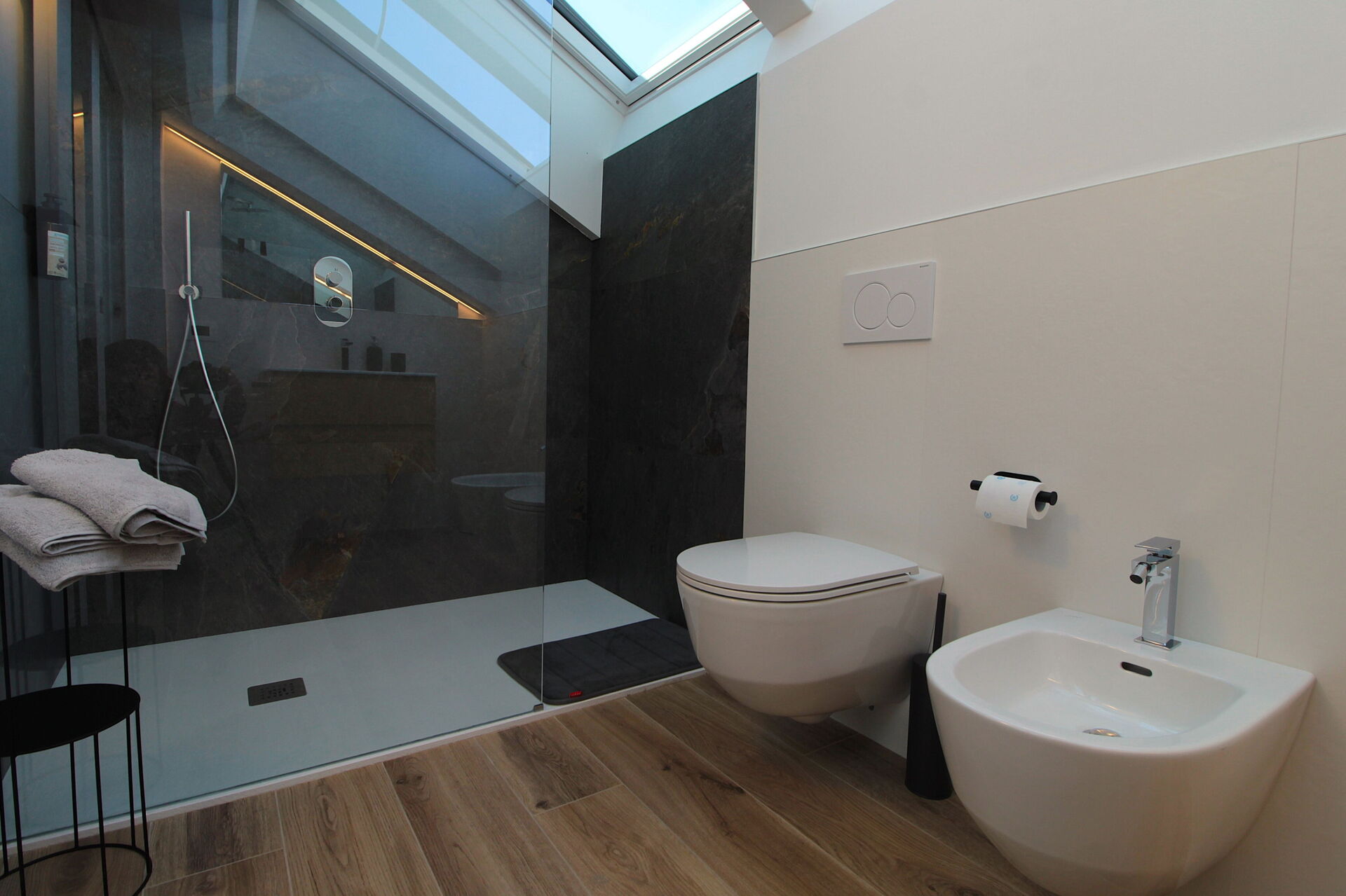 Badeværelse: vask, wc, bidet, bruser, hårtørrer, WIFI internet.