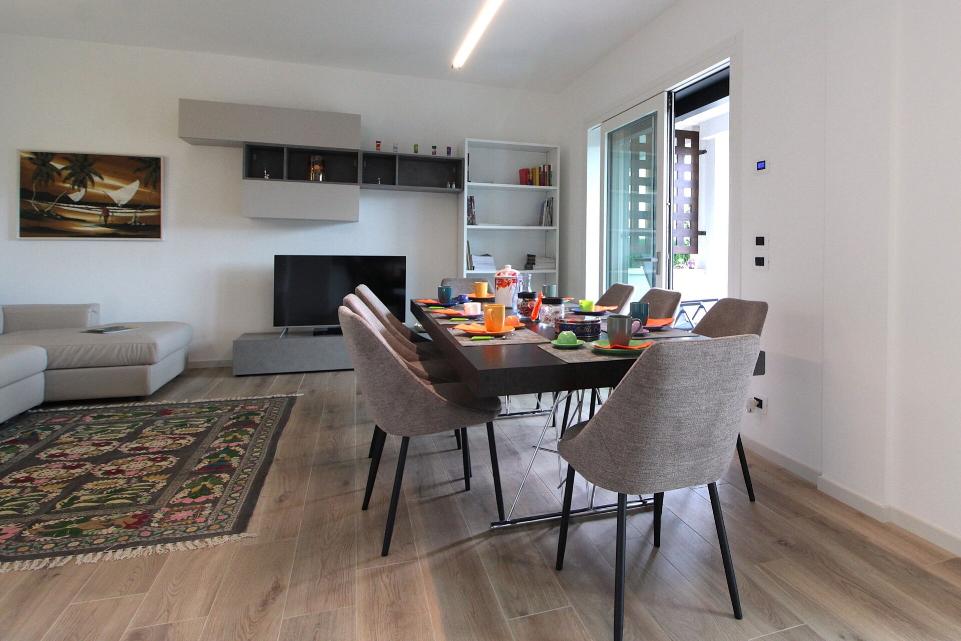 Køkken - stue: veludstyret køkken, spisebord, opvaskemaskine, køleskab, fryser, mikroovn, kogeplader, ovn, italiensk kaffemaskine, sofa, WIFI internet, klimaanlæg, tv, udgang til have.