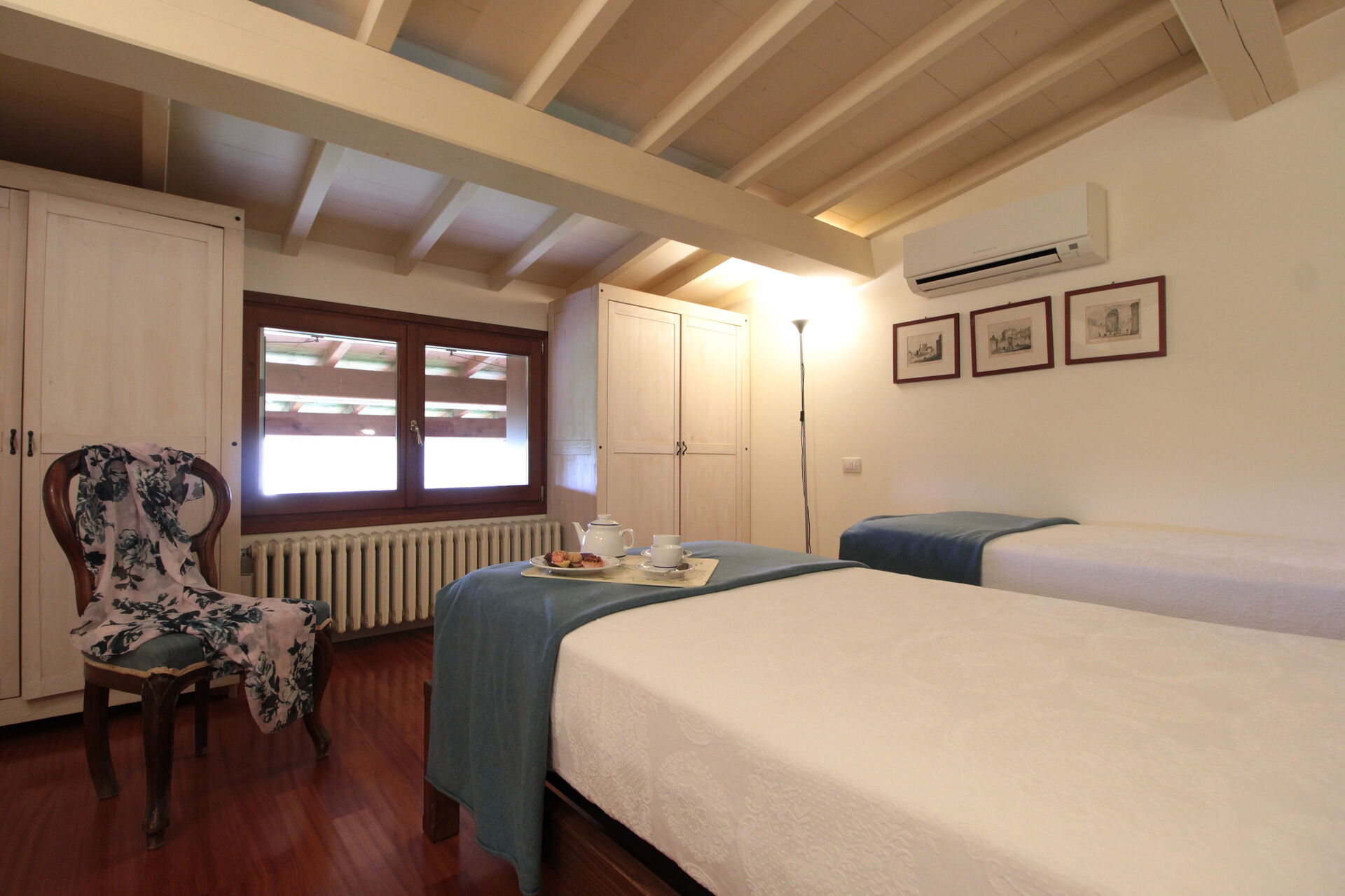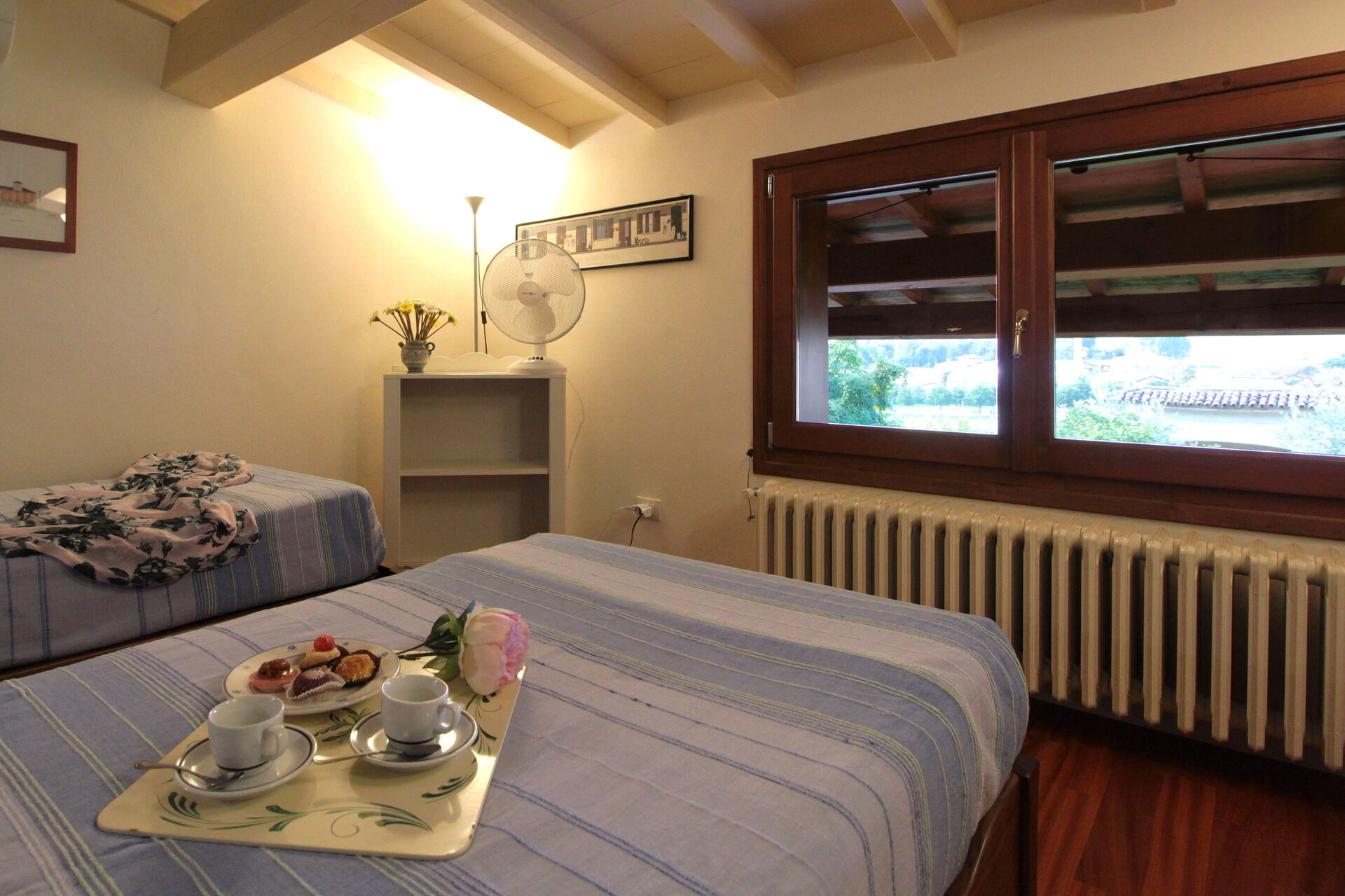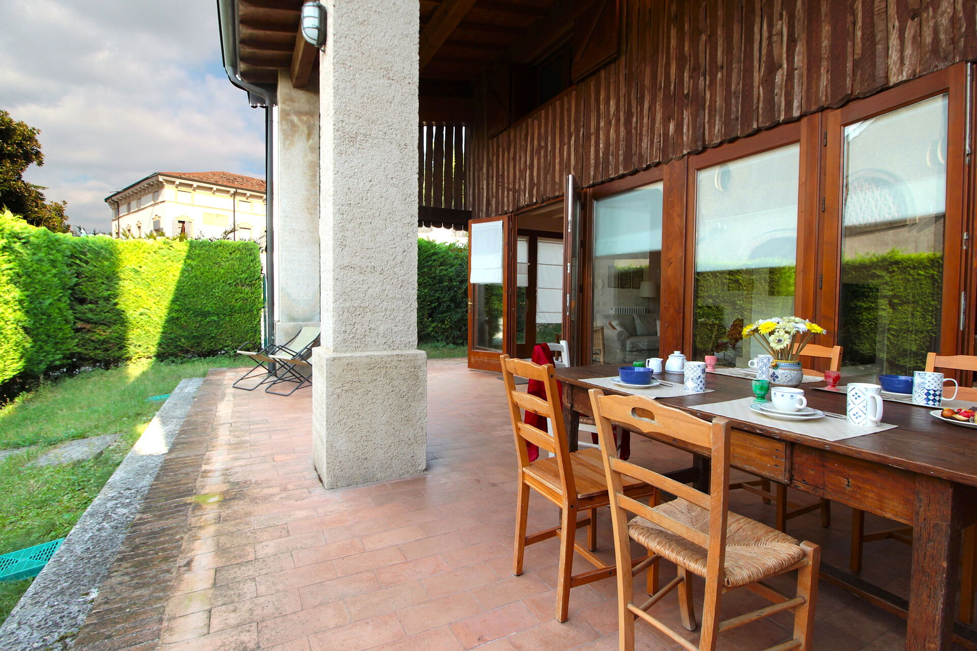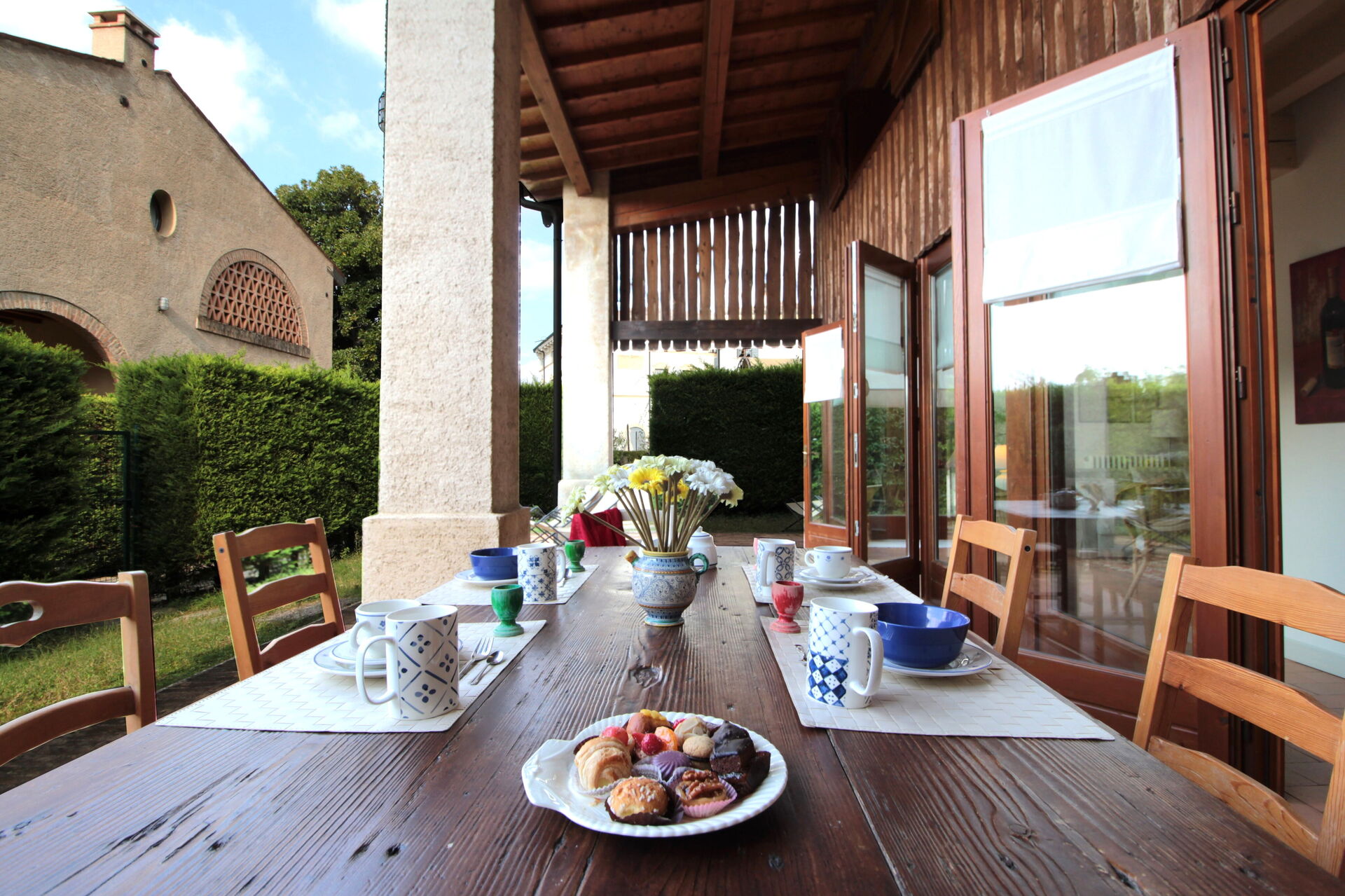 Når I ankommer, vil I blive budt velkommen af ejeren eller repræsentanten og I vil finde en fin ren og velholdt ejendom med udsigt over bakkerne perfekt til en afslappende ferie i Veneto. Til jeres store glæde vil I finde en fælles pool, hvor I kan køle ned, mens I nyder en dejlig kold drik efter en travl dag med museumsbesøg. At nyde et måltid med venner og familie er en stor del af den italienske kultur. Benyt det velekviperede køkken til madlavning med lokale produkter, når du er på ferie. Køkkenet indeholder kaffemaskine, mikroovn, brødrister, komfur og køleskab, samt, masser af service og bestik til op til syv personer.