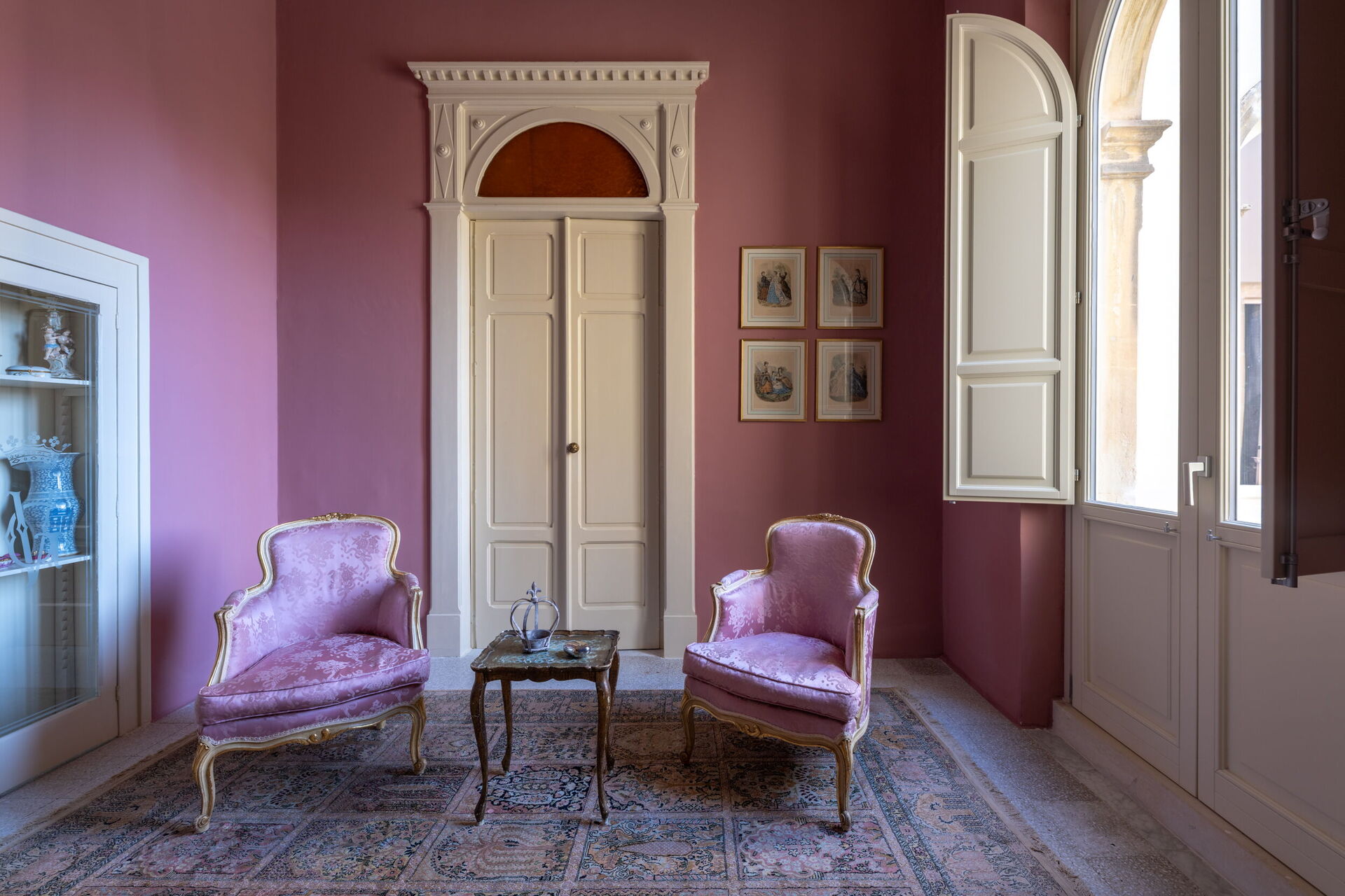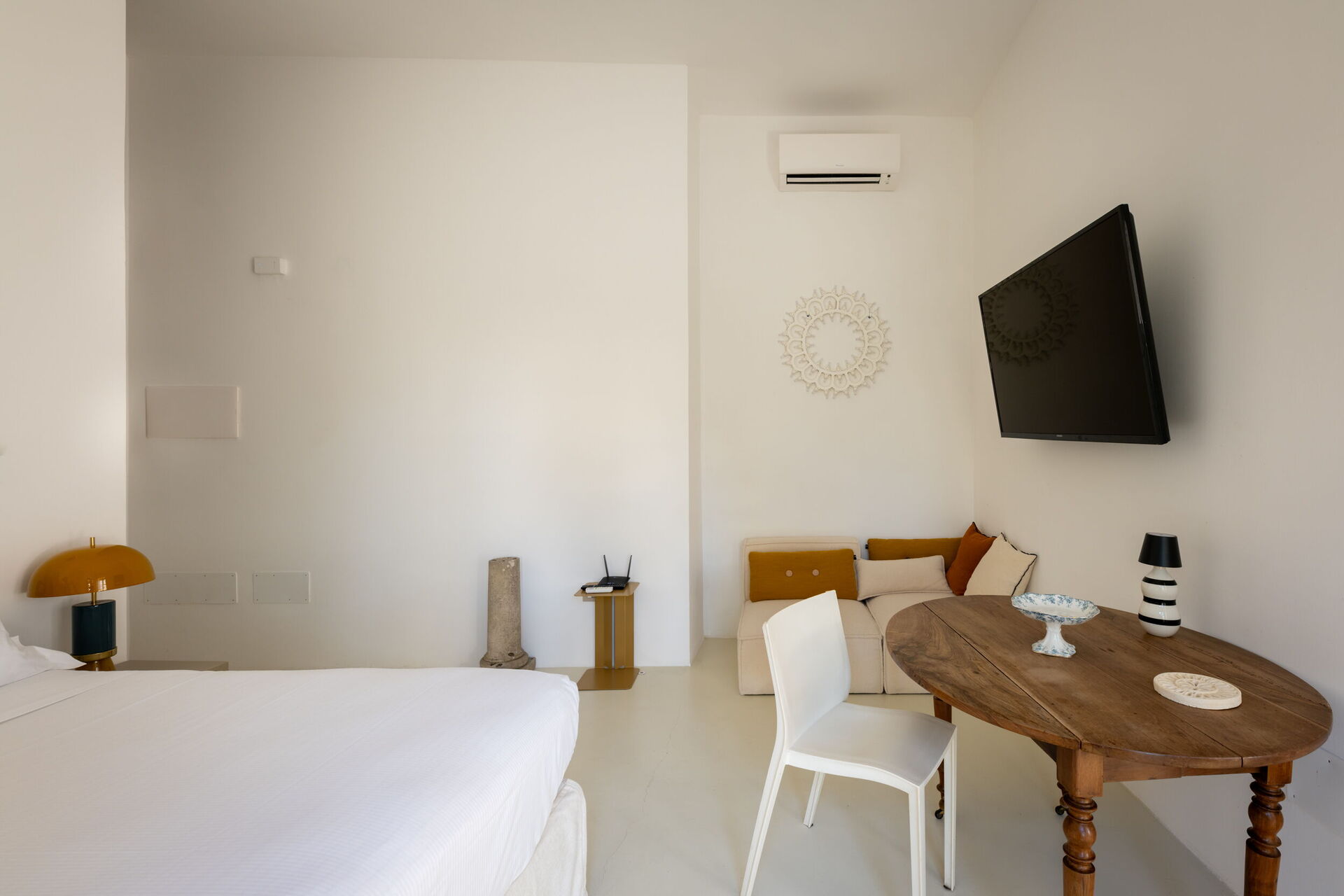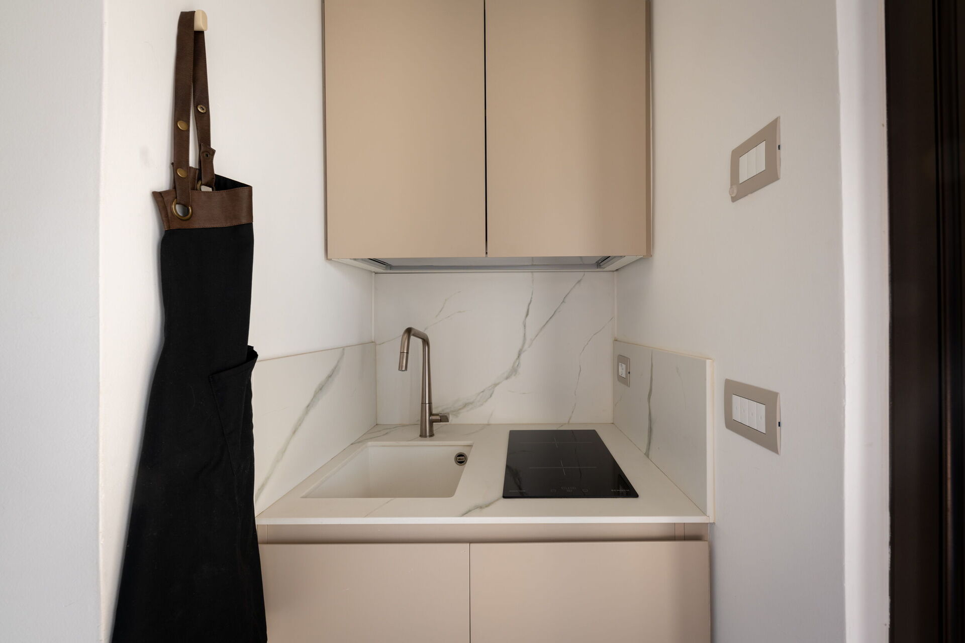 Casa Corte is the annex of the Palazzo, which enjoys total privacy because, in addition to the double bedroom and bathroom, it also has a small kitchenette with a hob, sink, and refrigerator, as well as a microwave, kettle, and Nespresso machine with capsules, and all the necessary equipment for quick lunches or dinners. A small outdoor pool with a comfortable sunbathing area and a terrace at the top of the building complete the spaces of this quiet and secluded corner. Outside, there is a barbecue area, outdoor shower, sofas, and dining table.