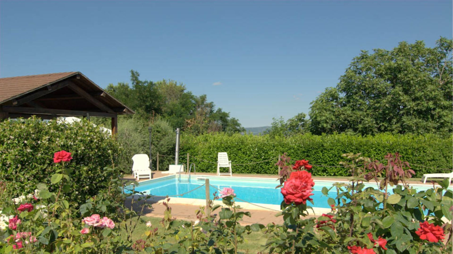 Udendørsarealerne på denne residens giver exceptionelle områder til afslapning og underholdning på vidtstrakte grunde. To swimmingpools udgør omdrejningspunktet for udendørsfaciliteterne, hvor den ene pool har en integreret hydromassageø til at forbedre Deres tid i vandet. Poolene er i drift fra 01/05 til 31/10 hver sæson. Omkring poolene vil De opdage et stort solariumområde perfekt til solbadning og nydelse af det italienske klima. De udstyrede grønne områder tilbyder rigelig plads til udendørsaktiviteter og sammenkomster, mens legepladsens faciliteter giver underholdningsmuligheder for gæster i alle aldre. Flere grillstationer er placeret rundt omkring på ejendommen, herunder en i pavillonkonstruktionen ved siden af Dolce Collina 2-enheden. Denne pavillon rummer også en traditionel pizzaovn, der skaber en autentisk udendørs spiseoplevelse. Grundene inkluderer dedikerede områder til græslege og en bowlingbane til konkurrencepræget underholdning. Casetta Rosa-lejligheden nyder godt af sin egen private have, der tilbyder et eksklusivt udendørsområde for den pågældende enheds beboere.