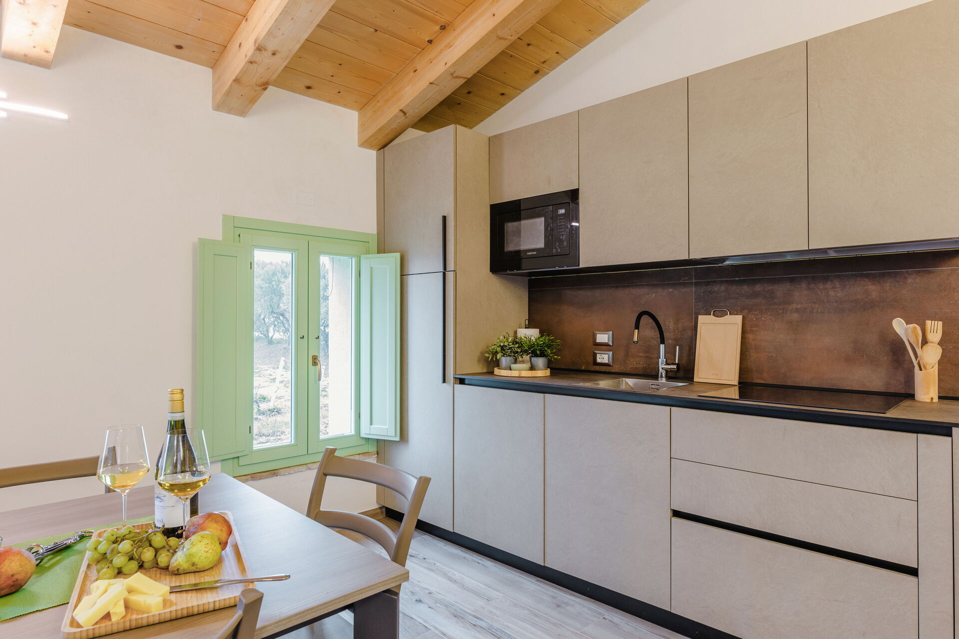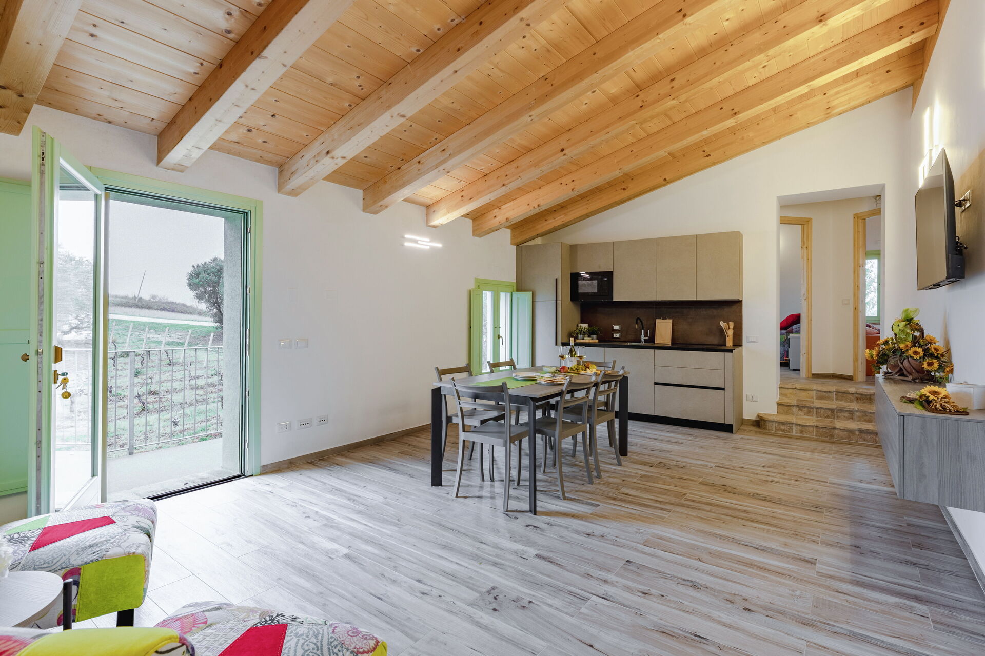 Når I ankommer, vil I blive budt velkommen af ejeren eller repræsentanten og I vil finde en skøn ren og velholdt ejendom med udsigt over bjergene og bakkerne ideel til en fredelig ferie i Marche. Uanset hvordan I tilbringer dagene - med shopping, sightseeing, museumsbesøg eller bare ved at køre rundt på landet, så kan I slappe af med familie og venner , når I kommer hjem, hvilket er en perfekt måde at afslutte endnu en dejlig dag på i Marche. Til jeres store nydelse er der på ejendommen gårdhave og barbecue. Hvis I nyder at lave mad til familie og venner så er der et veludstyret køkken inkluderet kaffemaskine, mikroovn, brødrister, komfur og køleskab, samt, , samt masser af service og bestik til op til 12 personer. Hvis I foretrækker at spise 'al fresco', er der en fuldt møbleret gårdhave, hvor I kan nyde vejret, mens I spiser udendørs.