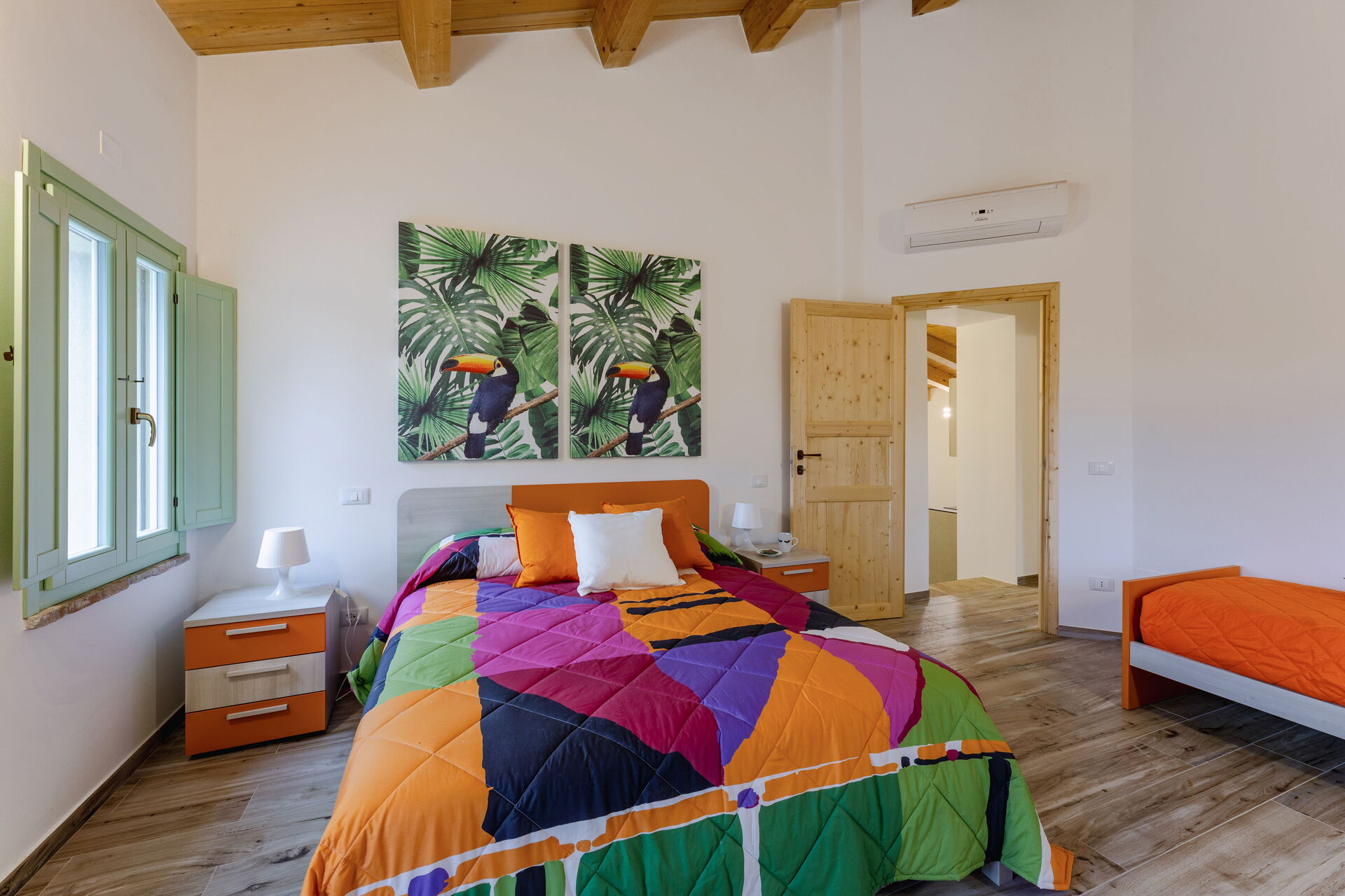 Soveværelse 2: dobbeltseng, enkeltseng, WIFI internet, klimaanlæg.