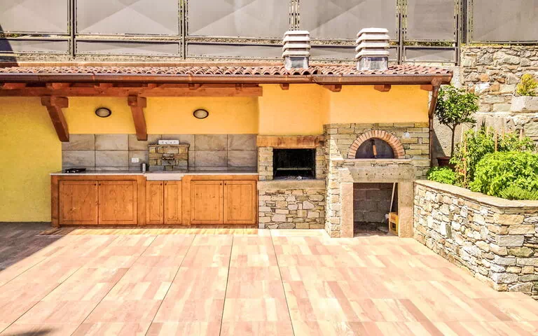 "Casa Muschialli", 8-værelse-villa 250 m2 på 3 etager. Rummelig og lys, meget komfortabelt og smagfuld indrettet: stue med panoramavindue med åben kamin (kun til dekoration), bibliotek og TV. Spisestue med panoramavindue med spisebord. 1 dobbeltværelse med 1 dobbeltseng. Udgang til altan. Køkken/alrum (ovn, opvaskemaskine, Gaskomfur, 4 gasblus, Brødrister, kedel, mikroovn, fryser, elektrisk kaffemaskine). Bad/brus/WC. Nederste etage: stue med TV. Brus/WC. Overetage: 1 værelse med 2 senge. 1 værelse med 1 fransk seng. 1 dobbeltværelse med 1 dobbeltseng. Brus/bidet/WC. Opvarming, gas-opvarming. Opvarme kun tilgængelig fra 15.10. til 15.04, solar Power. Parketgulve, naturlige stengulve. 2 altan, stor havesiddeplads. Havemøbler, grill, siddeplads. Meget flotte panoramaudsigt over søen og bjergene. Til benyttelse: vaskemaskine, strygejern højstol, barneseng til 2 år, hårtørrer, brænde (gratis). Internet (trådløs LAN [WLAN], gratis). Garage på grunden (4 Biler). Bemærk venligst: velegnet for familier. Ikke-ryger hus. 1 husdyr/hund tilladt. Brandalarm, brandslukker.