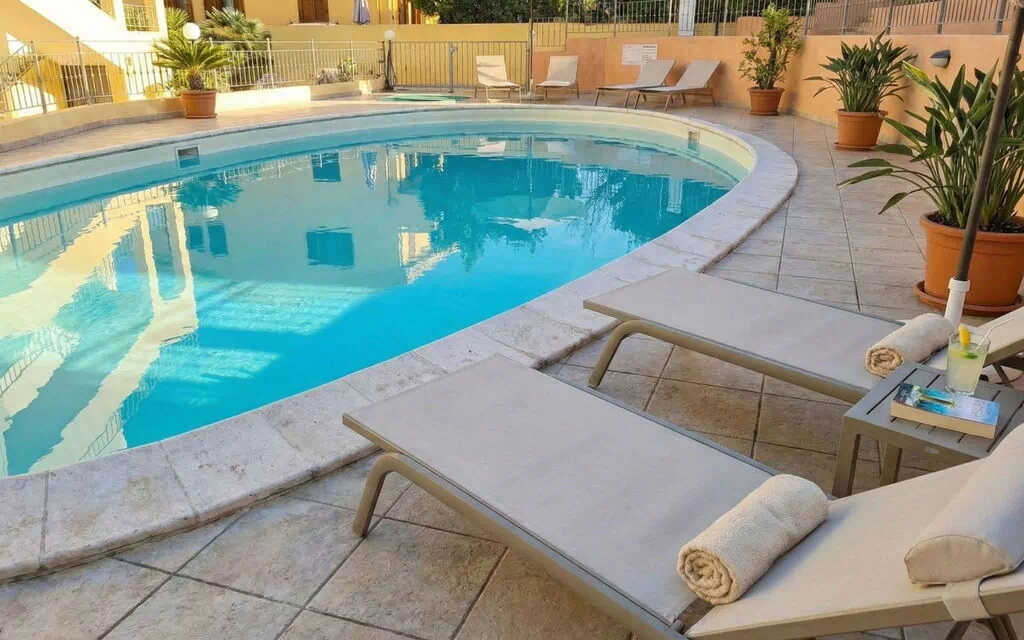"Spuma di Mare", 2-værelse-lejlighed 45 m2, i stueetagen. Enkelt og hensigtsmæssig indrettet: stue/spisestue med 1 dobbelt sovesofa (160 cm, længde 190 cm), TV og fladskærms TV. Udgang til terrasse. 1 dobbeltværelse. Kogeniche (miniovn, 4 Induktionskomfur, Brødrister, kedel, elektrisk kaffemaskine). Brus/bidet/WC. Klimaanlæg. Lille terrasse. Havemøbler. Udsigt over svimmingpoolen. Til benyttelse: strygejern hårtørrer. Velegnet for familier. Maksimum 1 lille husdyr/hund tilladt. IT090023C2000U1799