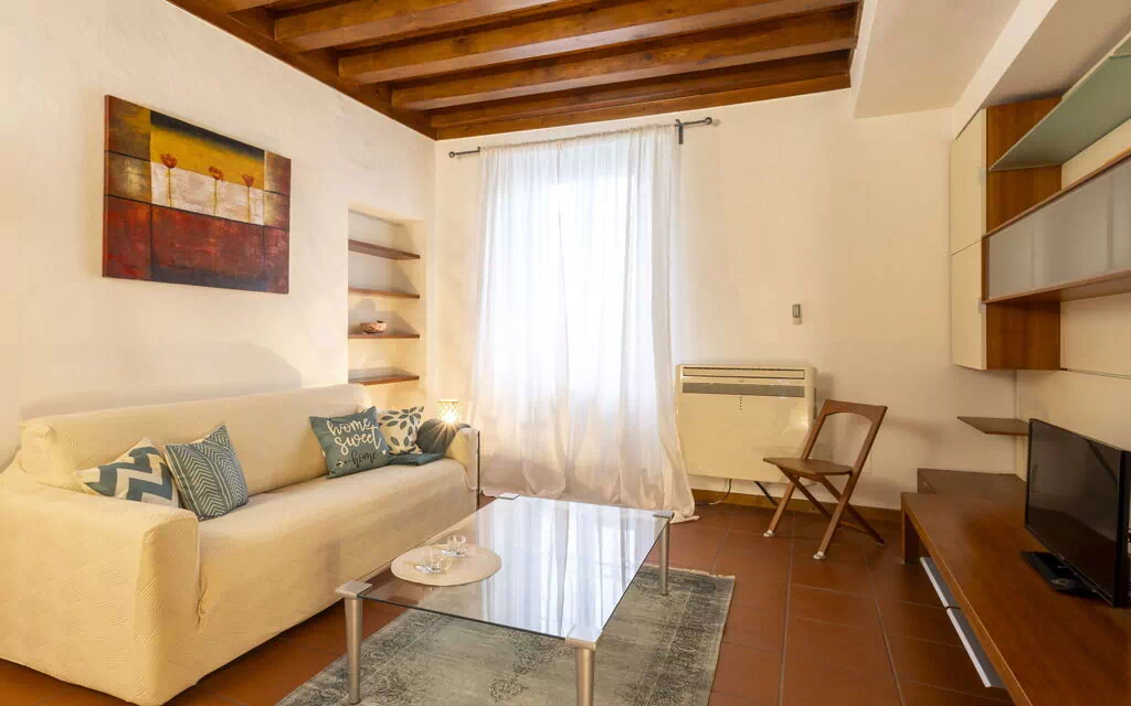 2-værelse-lejlighed 70 m2 i 4. etage, syd vest vendt. Rummelig, hensigtsmæssig og komfortabelt indrettet: åben stue/spisestue med 1 dobbelt sovesofa (140 cm, længde 185 cm), TV. 1 værelse med 1 dobbeltseng. Åbent køkken (ovn, opvaskemaskine, 4 gasblus, Brødrister, kedel, mikroovn, fryser, elektrisk kaffemaskine, Kapsler til kaffemasin (Nespresso) gratis) med spisebord. Brus/bidet/WC. Opvarming, klimaanlæg. Til benyttelse: vaskemaskine, strygejern (ekstra), hårtørrer. Internet (trådløs LAN [WLAN], gratis). Bemærk venligst: ikke-ryger lejlighed. Brandalarm, brandslukker. IT015146C2P6TCFJEO