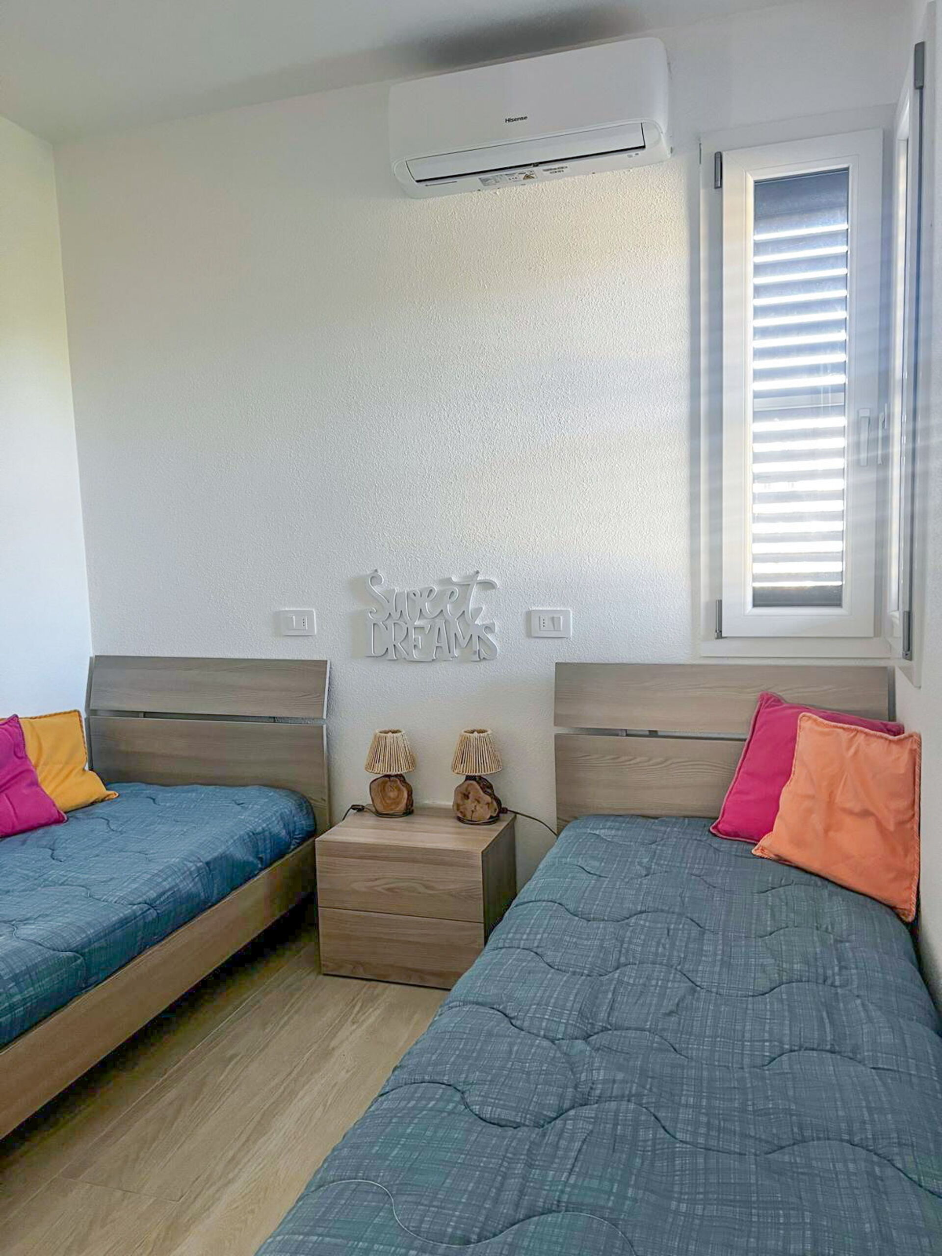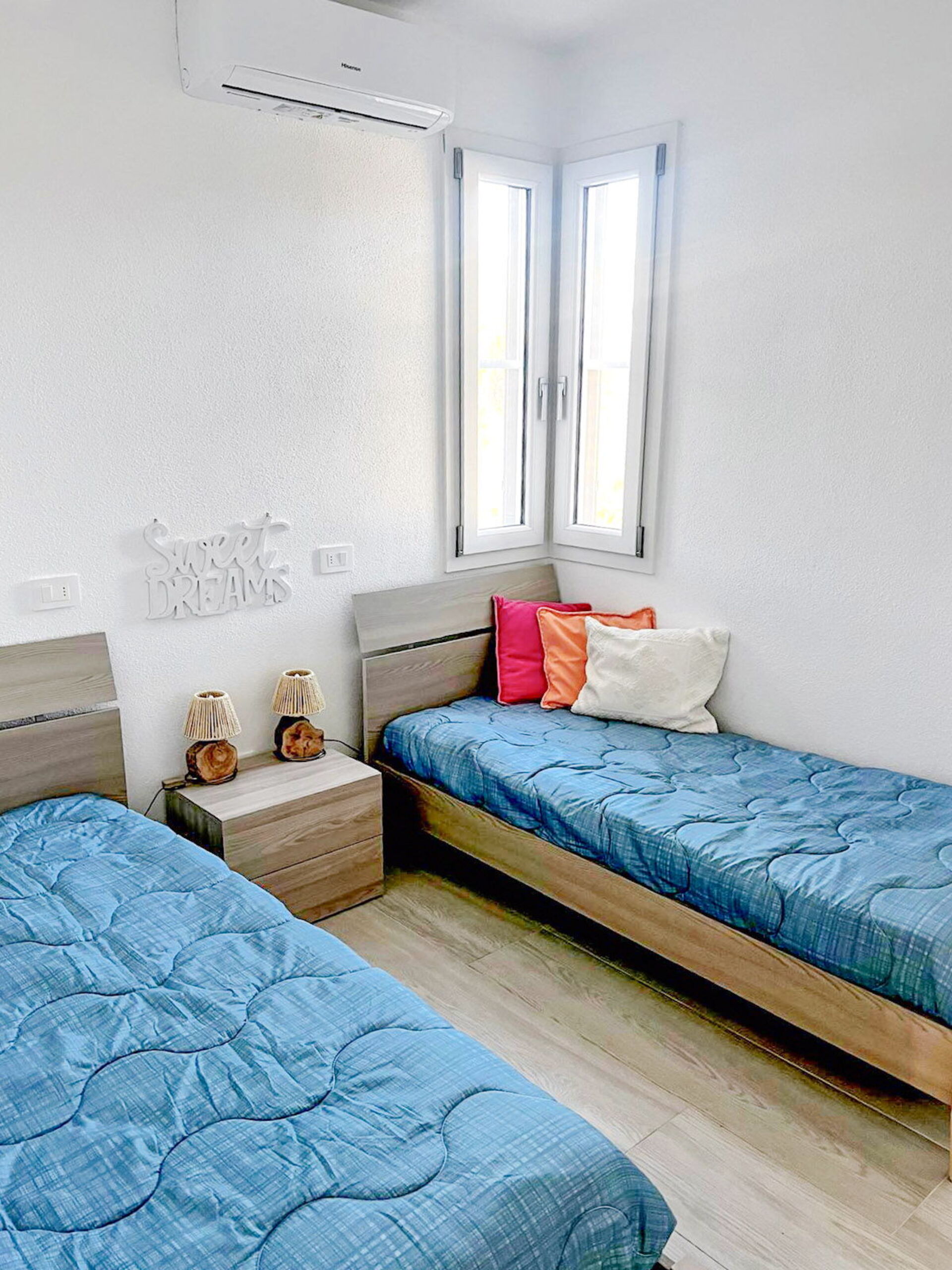 Aircondition i de to soveværelser og i køkken/stuen.