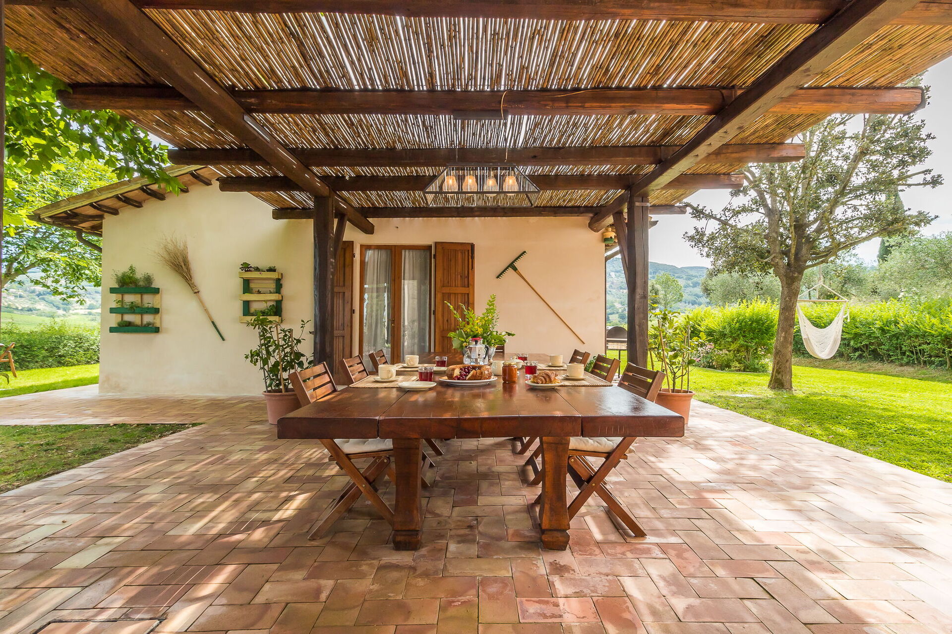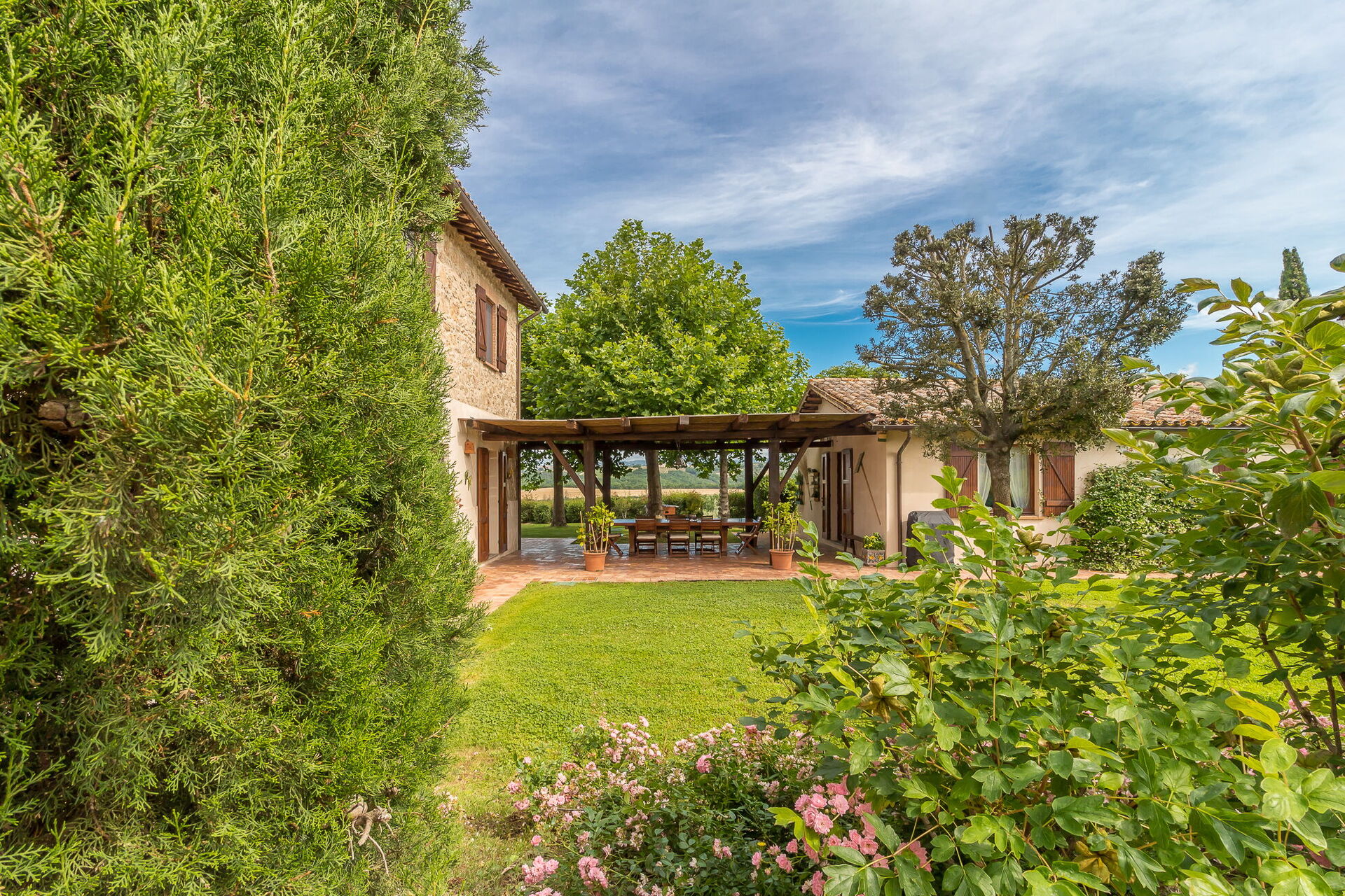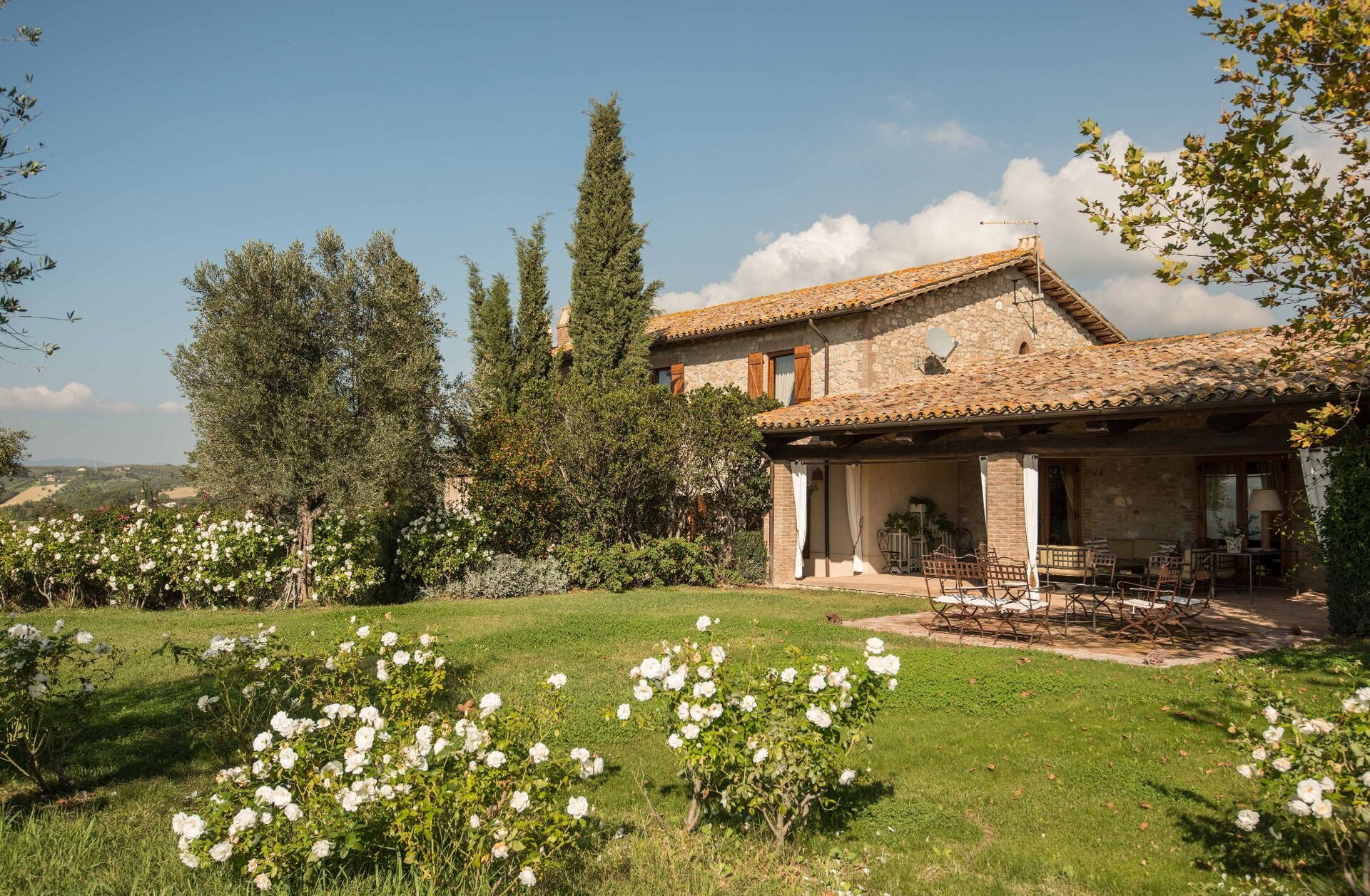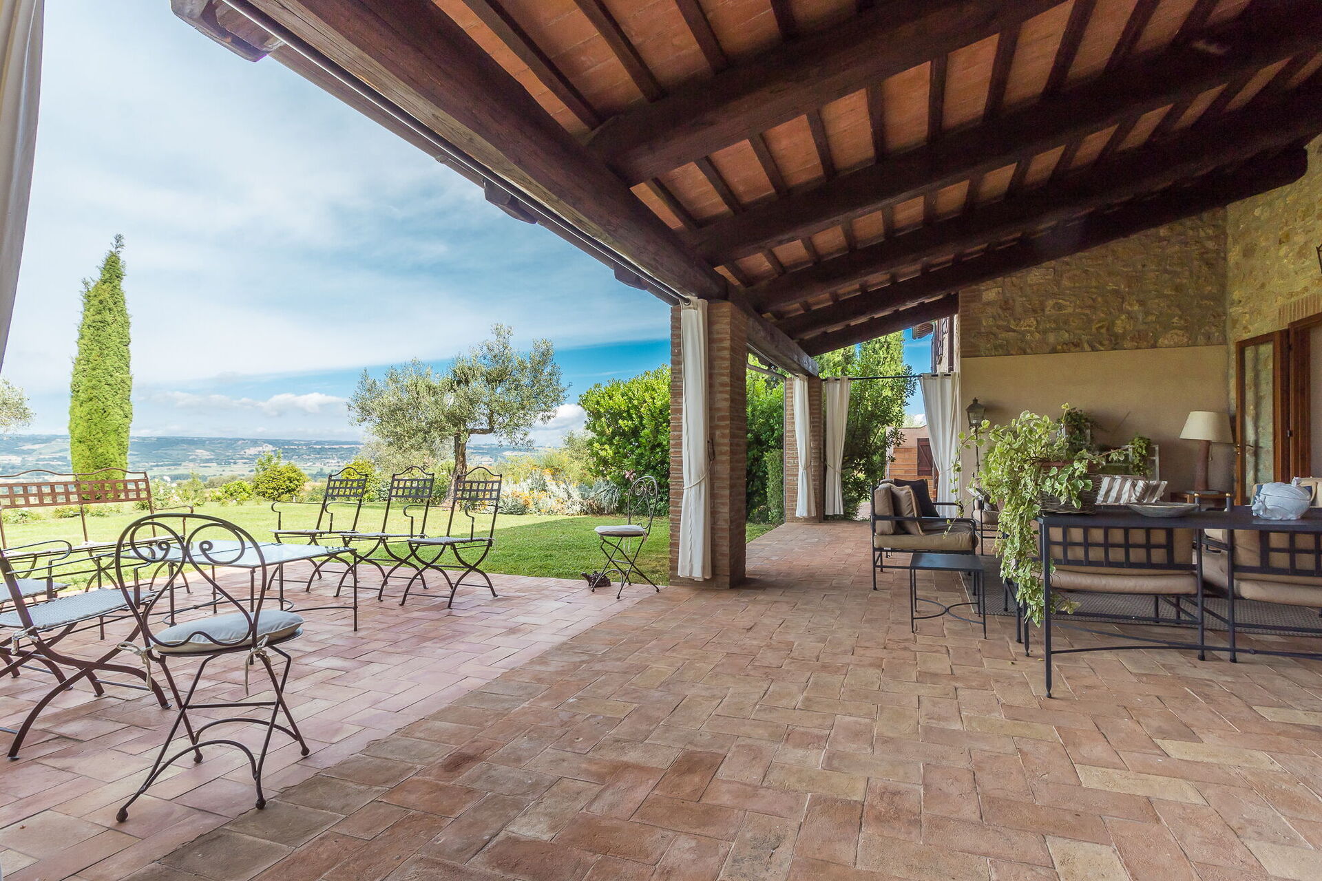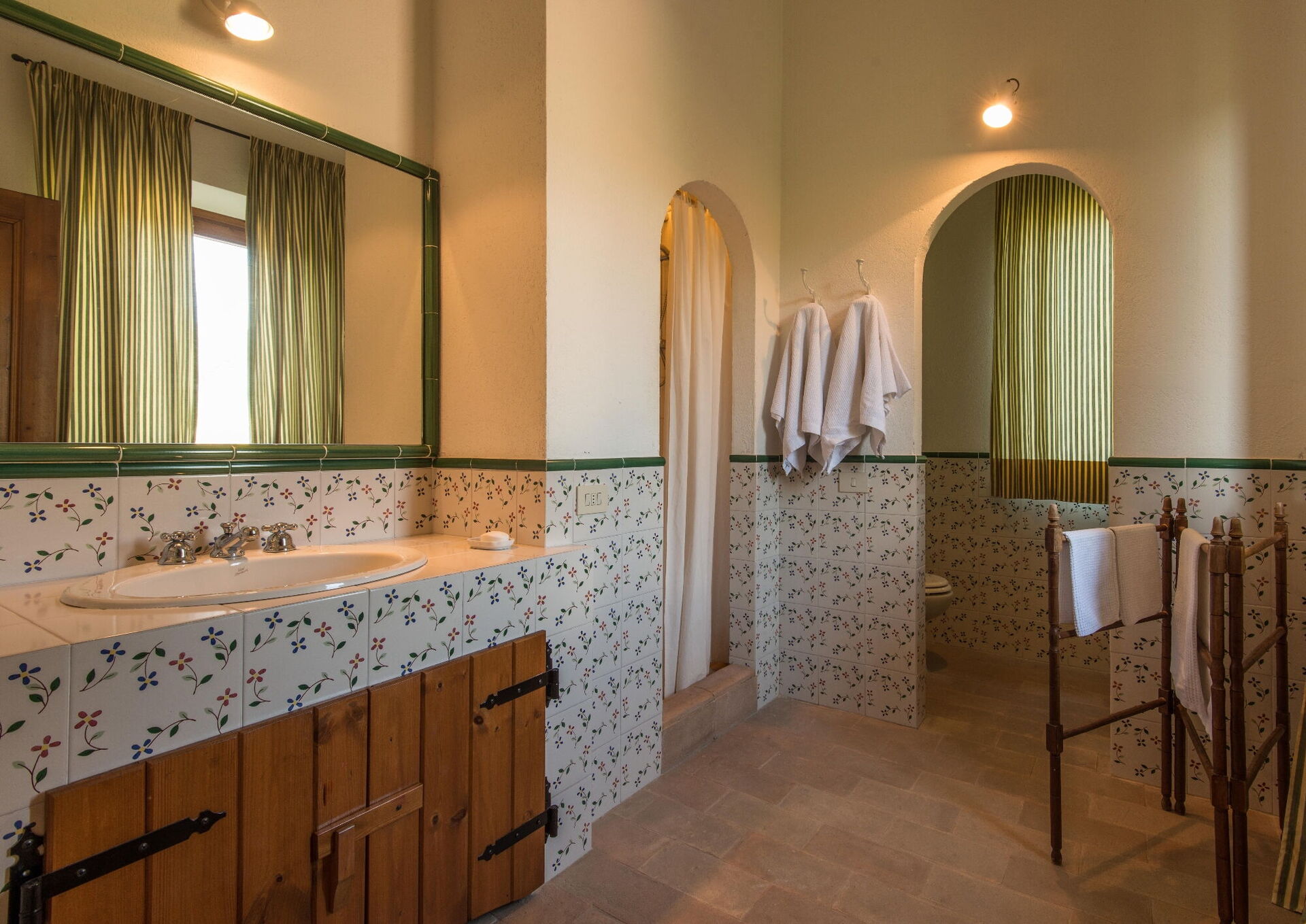 Il Molinazzo er en elegant, uafhængig landvilla med plads til 10 til 14 personer i 7 soveværelser og 7,5 badeværelser, perfekt beliggende til at udforske den sydlige del af Toscana, Umbrien og Lazio. Beliggende i Montecchio, Italien, kun 20 km fra den billedskønne by Orvieto, strækker denne nyligt restaurerede ejendom sig over 500 kvadratmeter indendørs og ligger på 2 hektar grund. De vil opleve, at indkvarteringen er personligt indrettet med fremragende smag af ejerne, der opnår en vidunderlig balance mellem antikke møbler kombineret med moderne bekvemmeligheder. Ejendommen byder på en panoramisk swimmingpool i en dominerende position med spektakulær udsigt over det bølgende landskab. Aircondition er tilgængelig i alle soveværelser for at sikre jeres komfort i de varme sommermåneder, og trådløs internetforbindelse er tilgængelig under hele jeres ophold. Den omfattende gårdsplads indbefatter velholdte haver fyldt med roser, lavendel og andre blomstrende planter, alt sammen omgivet af olivenlunde og cypresser i et landskab formet af århundreders tålmodig landbrugstradition. Il Molinazzo består af 2 tilstødende stenhuse, hvor hovedhuset har plads til op til 10 personer i 5 soveværelser og 5 badeværelser, mens et mindre gæstehus rummer yderligere gæster i 2 soveværelser og 2 badeværelser plus et vaskerum. Denne indretning gør ejendommen ideel til familiesammenkomster eller grupper på 5 til 7 par, der søger både privatliv og fælles arealer.
