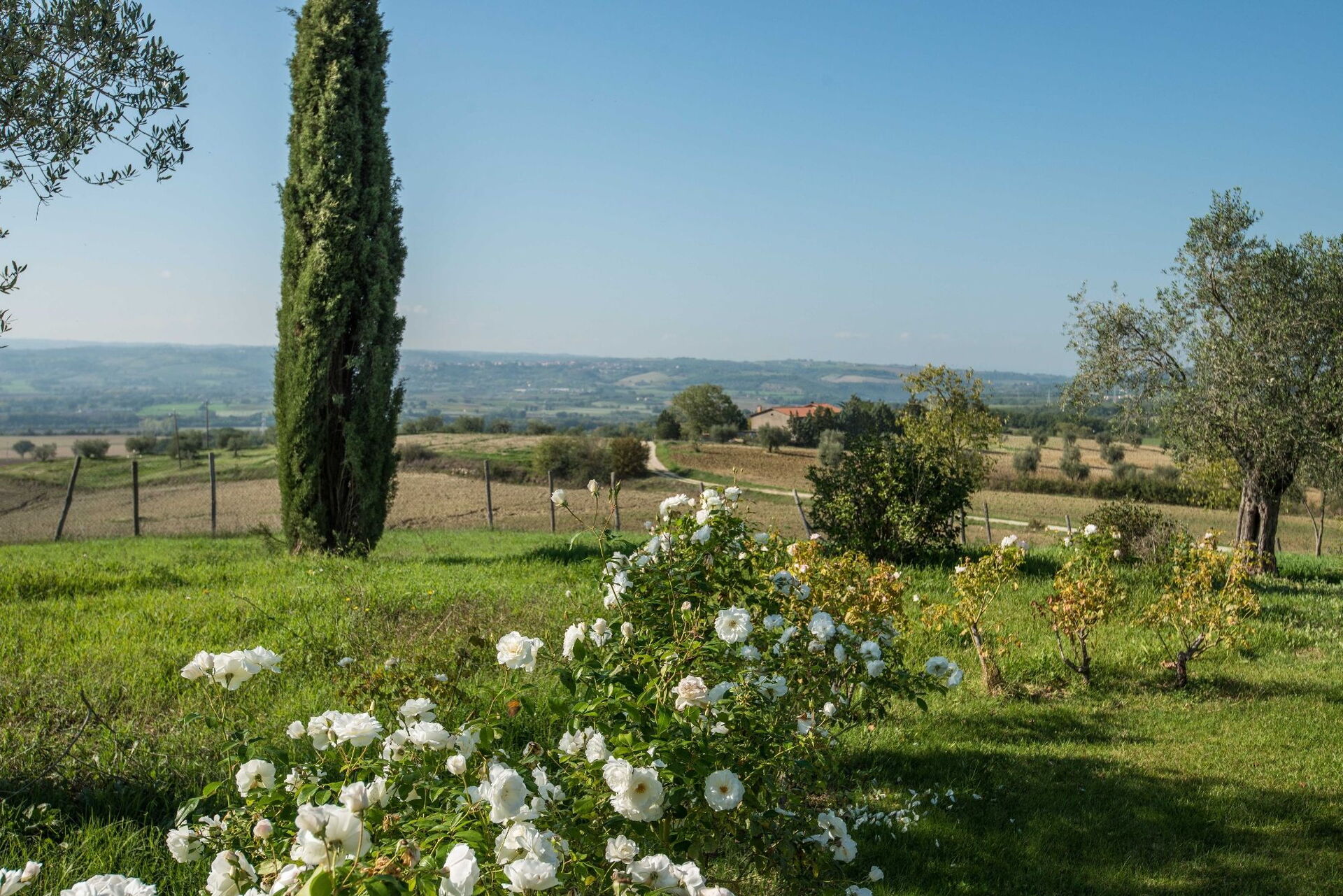Takket være sin centrale position i Montecchio fungerer Il Molinazzo som et ideelt udgangspunkt for dagture i denne smukke region. Den billedskønne by Orvieto ligger kun 20 km væk, mens ejendommen ligger bekvemt inden for dagsturaffstand fra Città della Pieve, Castiglione del Lago og Trasiméno-søen, Montelpulciano, Pienza, Montalcino og andre fortryllende bakkebyer i det sydlige Toscana. Berømte umbriske destinationer omfatter Todi, Spoleto, Assisi og Perugia, alle nemt tilgængelige fra ejendommen. De kan også vandre væk fra de mest befærdede turiststier for at udforske mindre skatte som Civita di Bagnoregio i Lazio eller besøge de spektakulære haver i Castello di Vignanello nær Viterbo kun 46 km væk. Rom kan nås med tog på cirka 1 time og 30 minutter, hvilket gør det muligt at opleve hovedstaden under jeres ophold. En 18-hullers golfbane er tilgængelig i Perugia for golfentusiaster, mens ridefaciliteter ligger kun 5 minutter fra villaen. Den vidunderligt rolige beliggenhed placerer jer midtvejs mellem Orvieto og Todi, i hjertet af Umbrien, omgivet af olivenlunde og cypresser, hvor udsigten strækker sig over landskabet mod slottet Guardea.