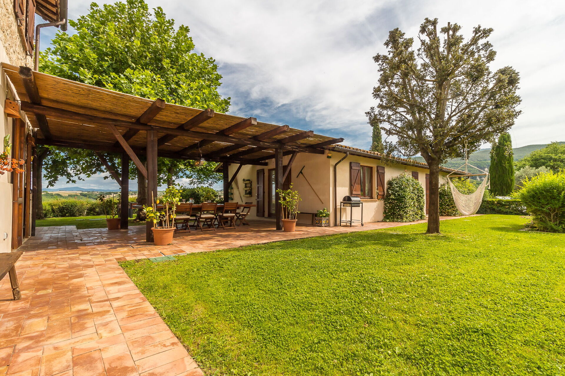 Dining terrace with table and chairs for 14 guests. BBQ.