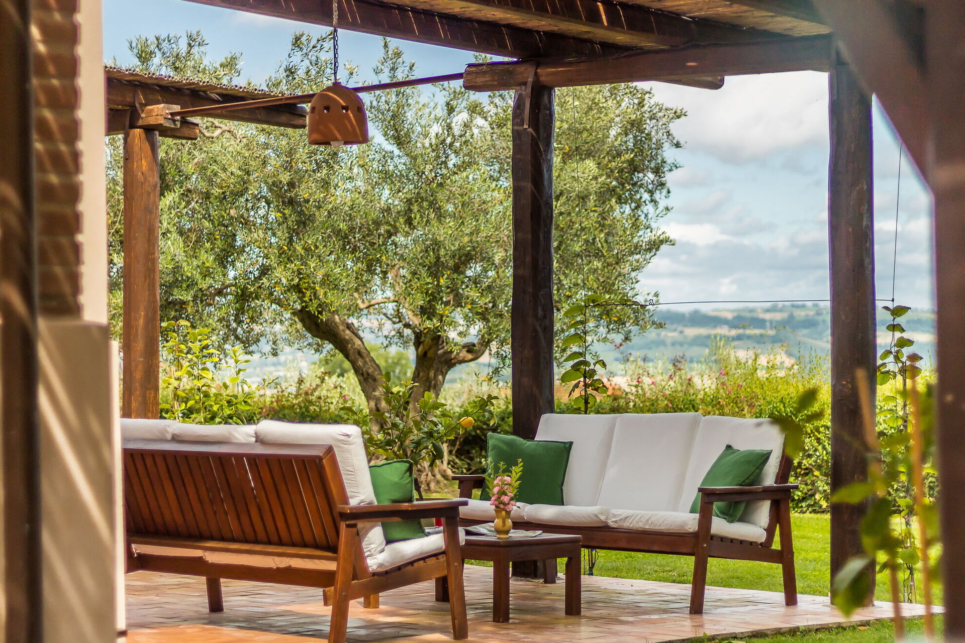 Panoramic Swimming Pool (12 x 6 meters; depth 60 to 1.70 meters) surrounded by olive groves and lovely views over the countryside; covered pergola and sun beds for 14.