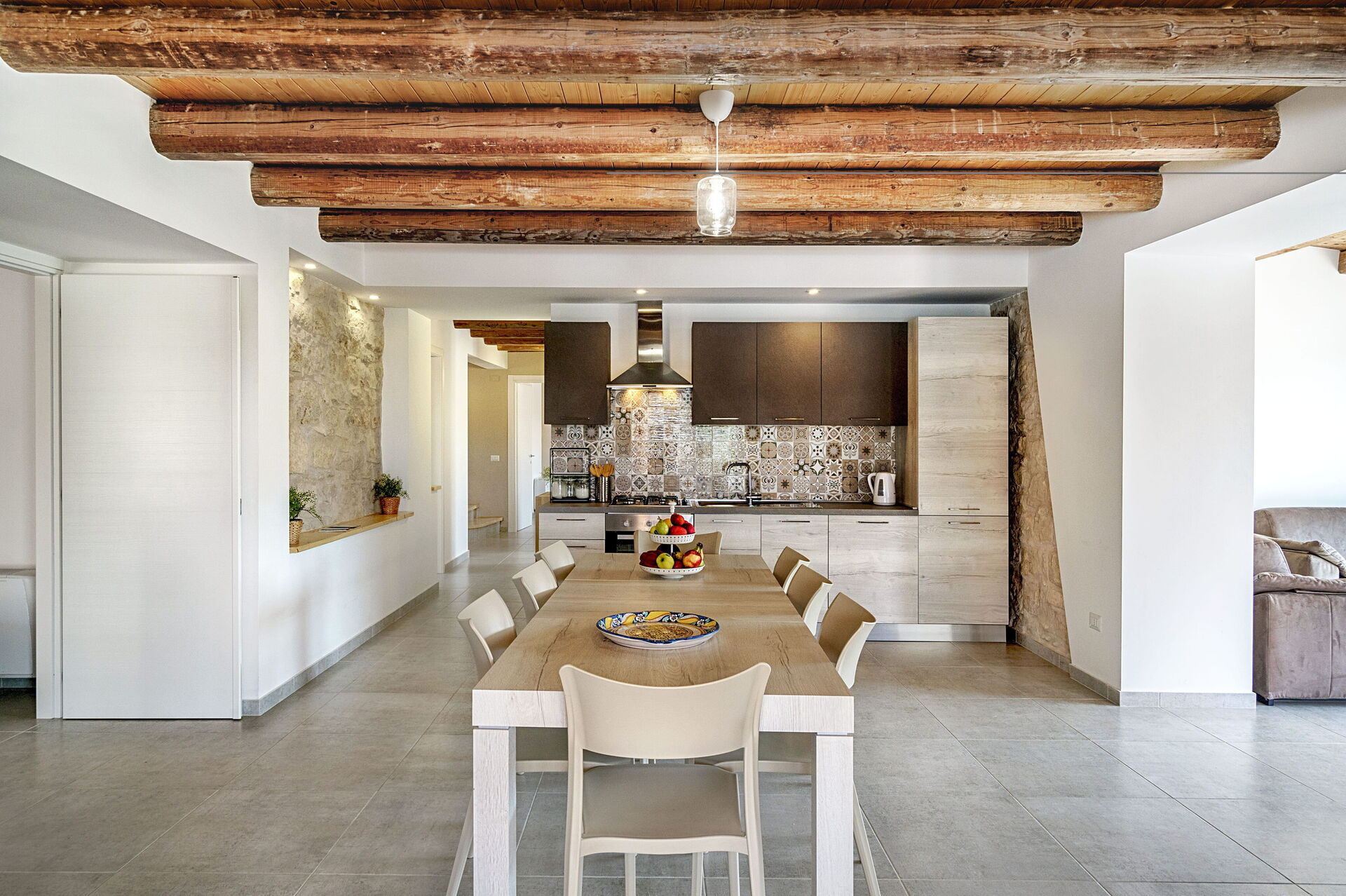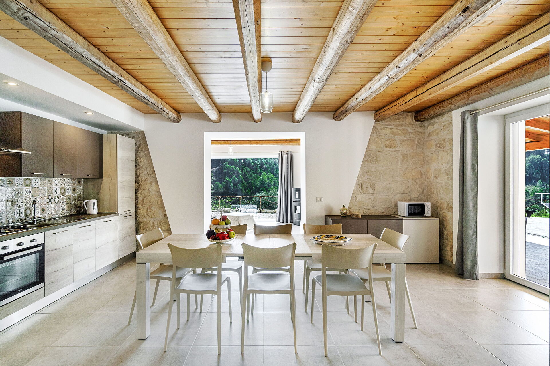 Ved ankomst til Villa Belvedere vil I finde en flot ren og velholdt ejendom med udsigt over bakkerne perfekt til en rolig ferie i Sicilien. Uanset hvordan I tilbringer dagene - med sightseeing, museumsbesøg, shopping eller bare ved at køre rundt på landet, så kan I køle ned med familie og venner ved poolen, når I kommer hjem, hvilket er en perfekt måde at afslutte endnu en dejlig dag på i Sicilien. At spise med venner og familie er en kæmpe del af den italienske kultur. Benyt det velekviperede køkken til madlavning med lokale produkter, når du er på ferie. Køkkenet indeholder masser af service og bestik til op til otte personer. Spis 'al fresco' som en ægte italienner. Den fuldt møblerede veranda er det ideele sted for at nyde sit måltid, familien og det dejlige italienske vejr.