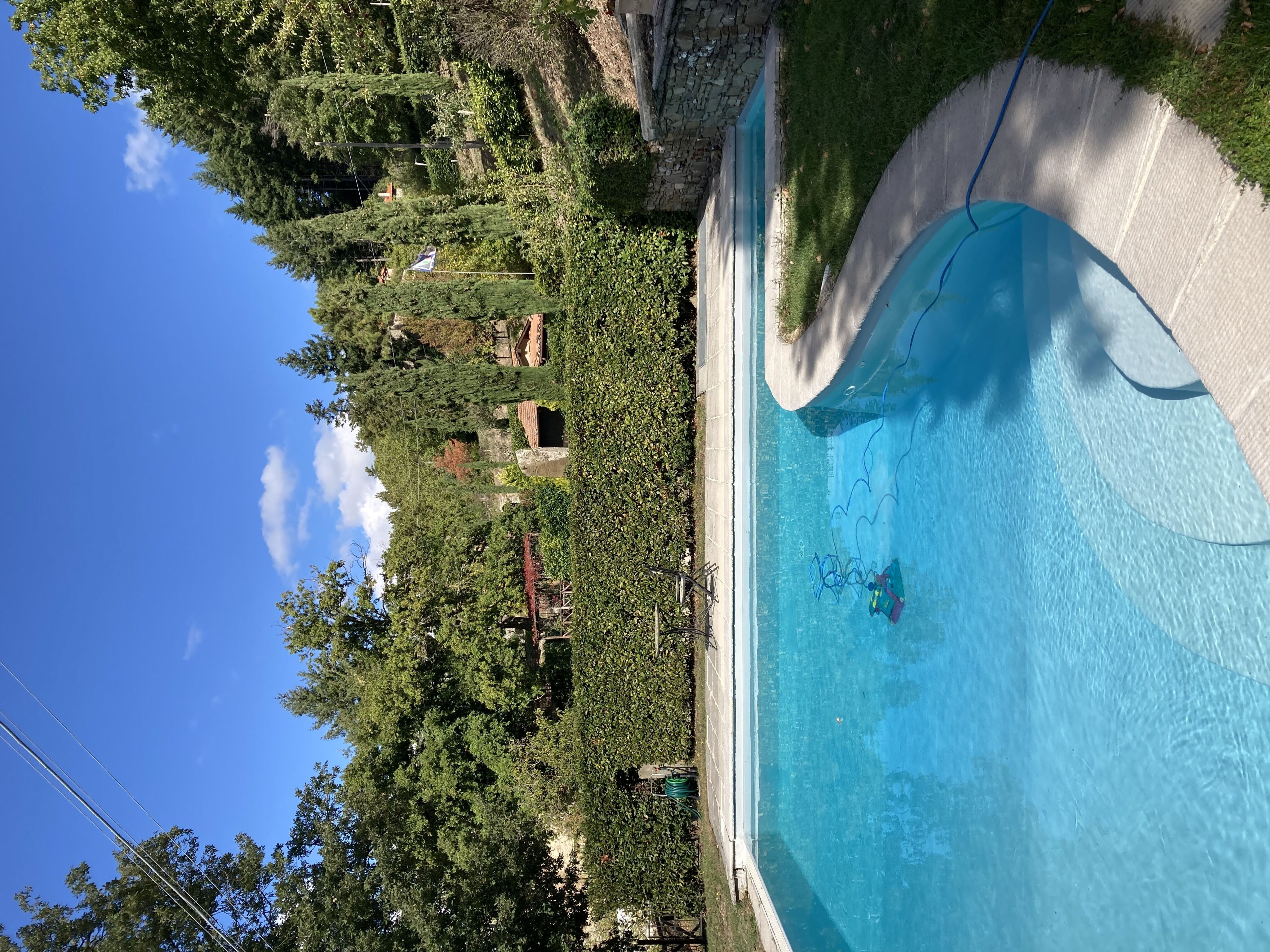 Til gæsternes rådighed: møbleret have, smukt uregelmæssigt formet swimmingpool (ca. 7 x 14 m - maksimal dybde 2,4 m), veranda udstyret med bord og stole til "al fresco" servering, grill. Brug af vaskemaskine og strygejern. Parkering på ejendommen.