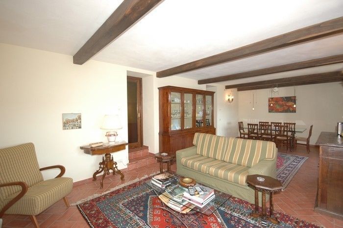 Share of a farmhouse with private access and independent garden, which has been carefully restored. This house is situated in sunny and panoramic location and it is on a property comprising 3 units and offers splendid and extensive views over a valley below. Subbiano is a comfortable and tastefully furnished house. A nice panoramic pool and a tennis-court (both to be shared with the owners who live occasionally in a house nearby) are available. The natural preserve of “Foreste Casentinisi” is only a short distance away.