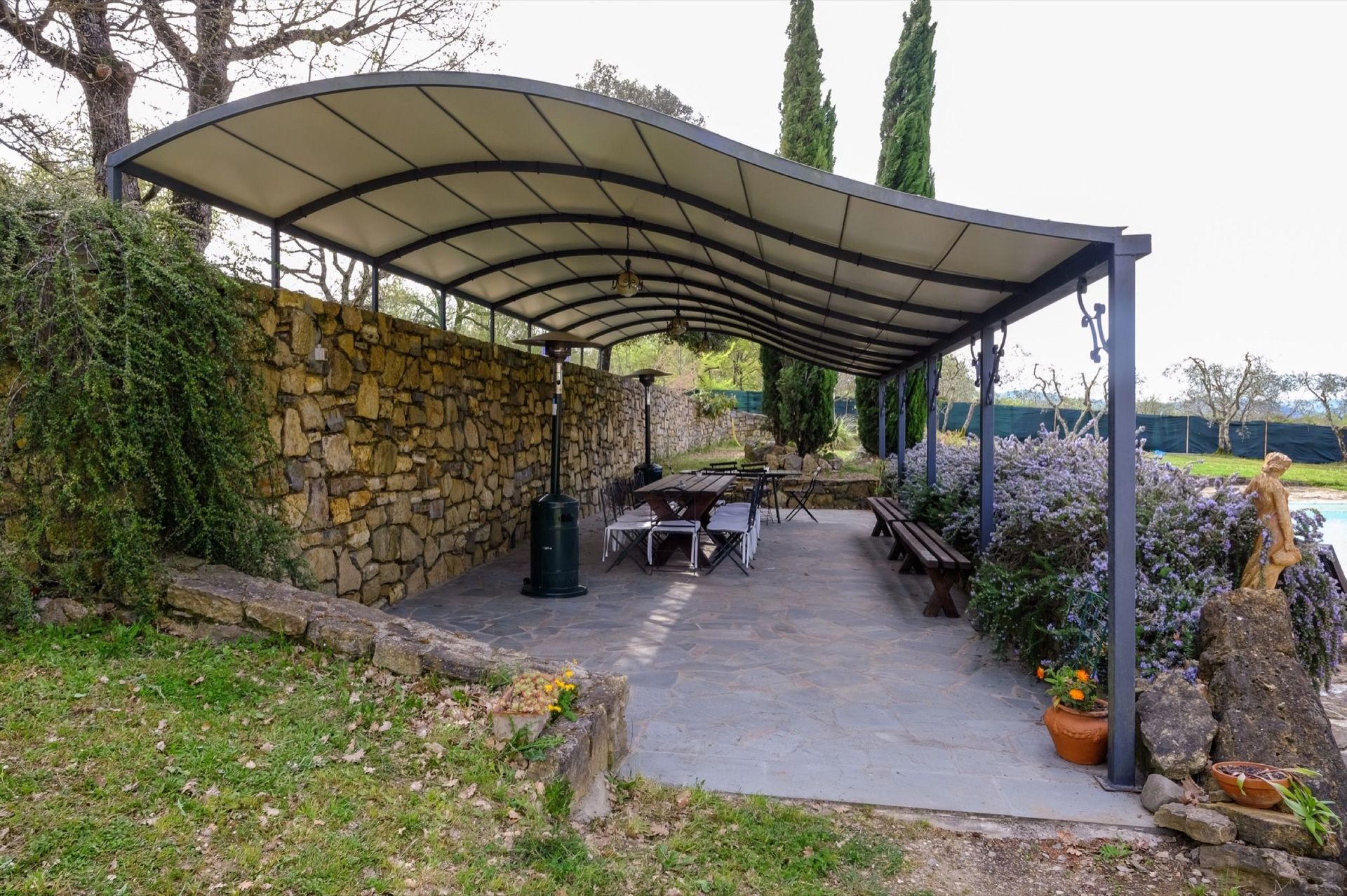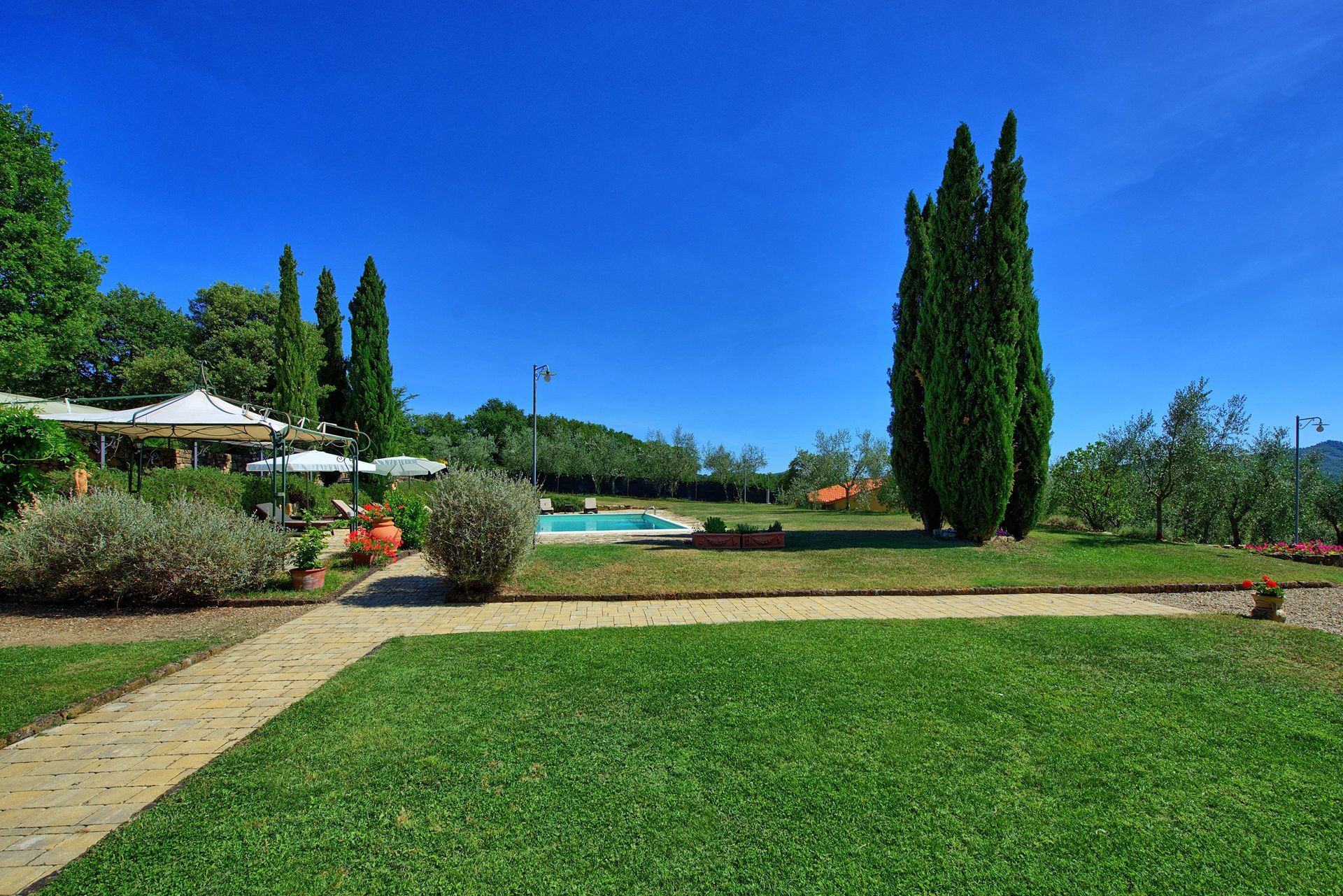 Til gæstebrug: lukket have og græsplæne (10.000 kvadratmeter) med belyst privat pool (7 x 14 m - dybde 1,5 m - åben fra 20/04 til 10/10), udendørs bruser, grill, stort lysthus tæt ved poolen, volleyballbane, charmerende loggia i stueetagen og en stor terrasse med panoramaudsigt på anden sal.