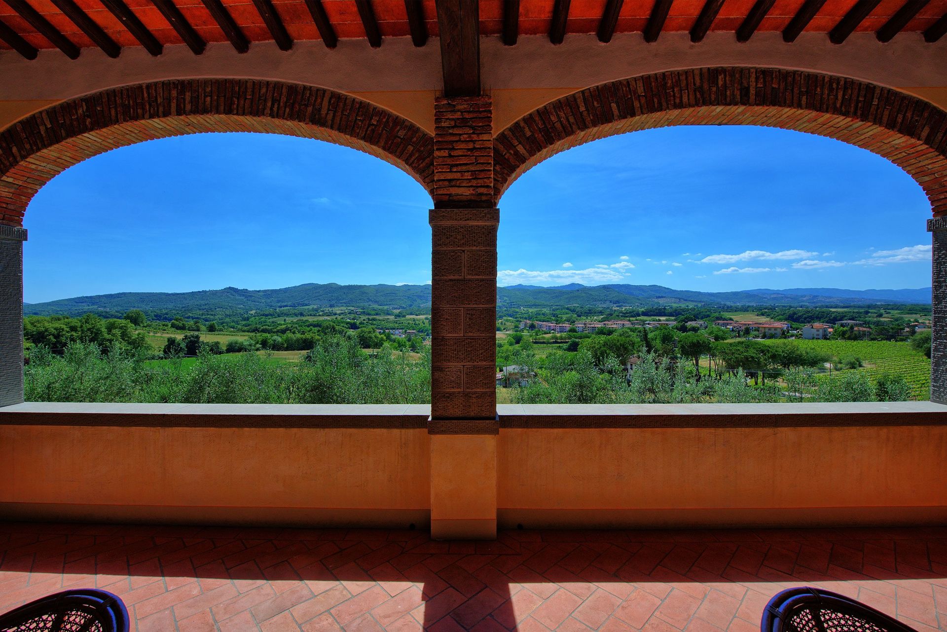 Ejendommen ligger på et solrigt fremtrædende sted i landskabet mellem oliventræer og med udsigt over de smukke omgivelser og den lille by Bucine. Fra huset kan du også se bakkerne i vinområdet Chianti Classico.