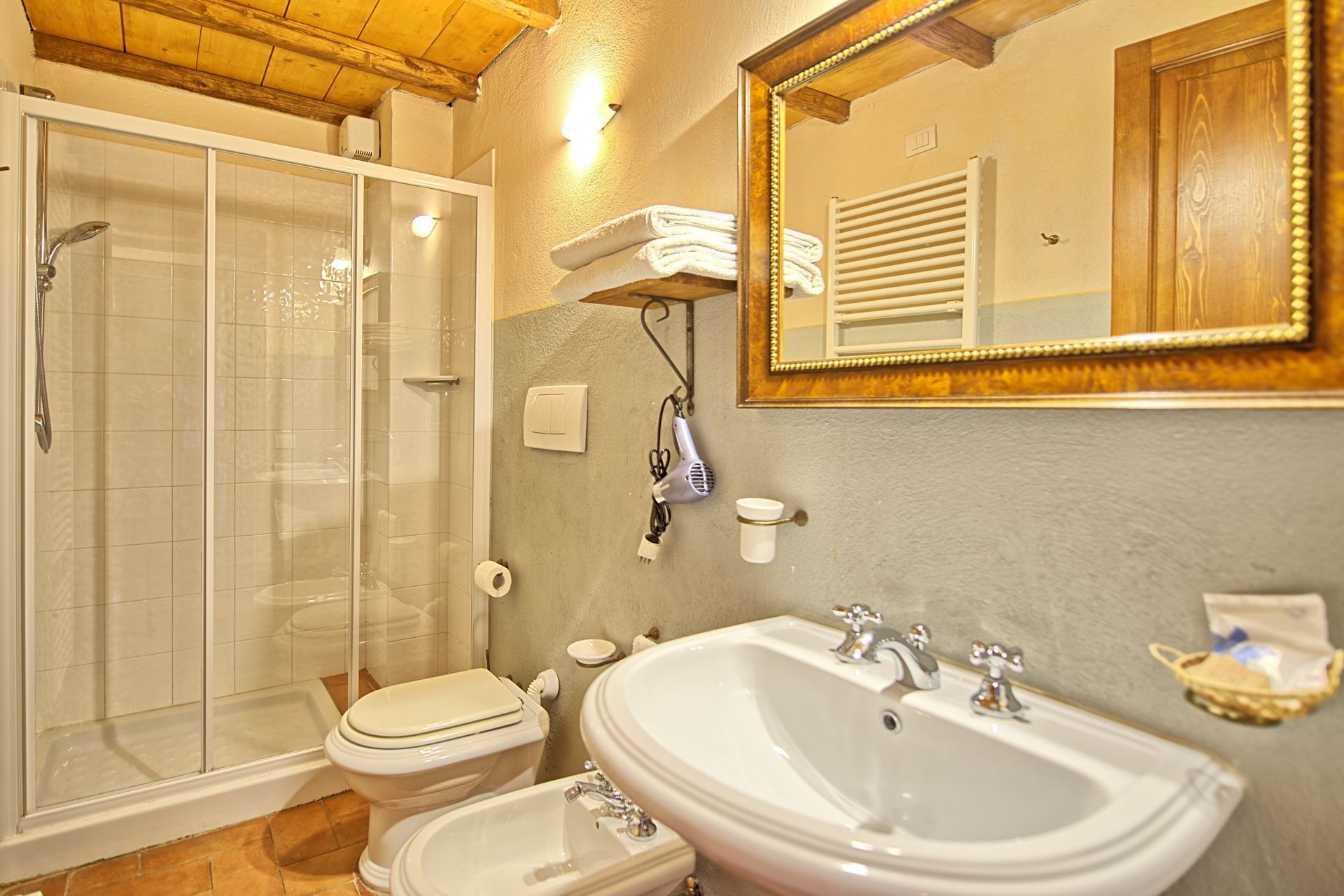 Meget smuk gammel villa med to tårne, der dateres tilbage til 1700-tallet. Huset blev oprindeligt brugt som et jagtborg. Villaen er bygget i "Leopoldino" -stil og er for nylig blevet restaureret på en meget smagfuld måde. Indretningen er i en hyggelig rustik stil med strejf af antikviteter.