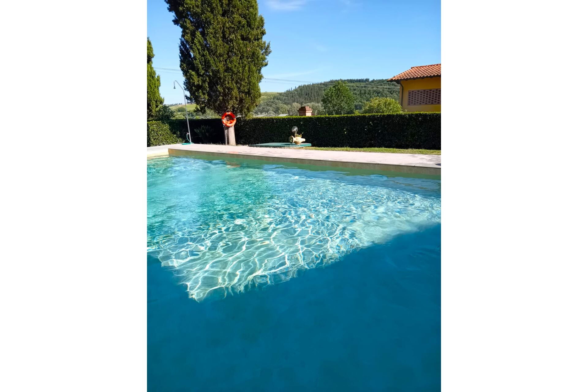 The location of the villa is amazing. There are beautiful views, plenty of space outdoors and it is convenient to be able to visit multiple places throughout Tuscany. The town of Poggibonsi is quite nice. It isn't touristy so the prices are very good for food. The space inside the villa is very roomy, we had 7 adults and 3 children and never felt cramped. It was very nice having laundry facilities on site. Matteo was a gracious host and we enjoyed meeting him and his family. The pool was very relaxing and it was great just to spend the afternoon outdoors with a bottle of wine while the kids swam. We also enjoyed walking to the nearby castles and exploring the area. We especially enjoyed seeing the fireflies at night and the deer and pheasants in the morning. I would highly recommend staying here.