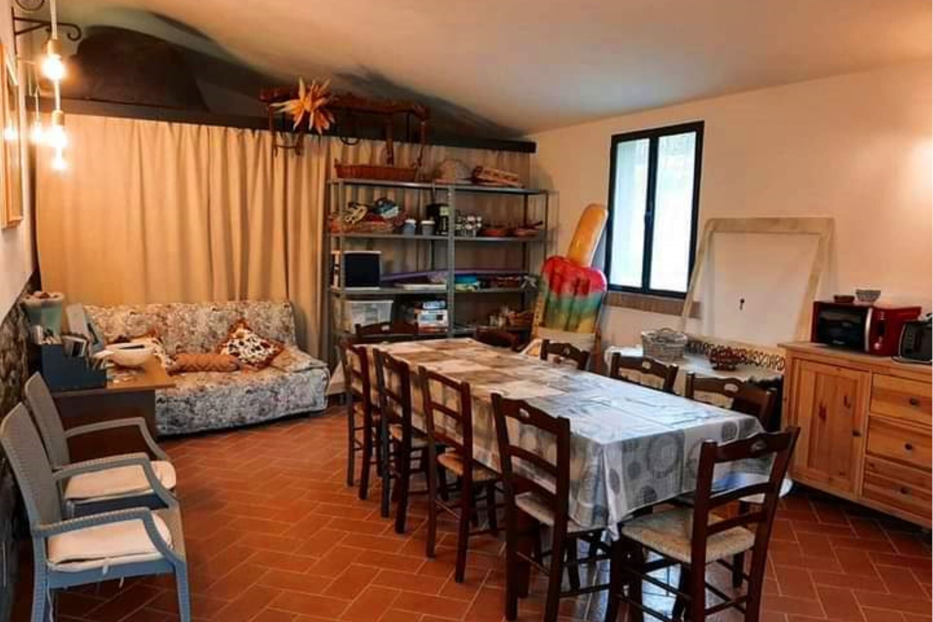 In the large green area around the farmhouse you will find the beautiful swimming pool, completely fenced in and for private use (size 10x5 metres, depth 1.10-1.50 metres - open from 01st May to 30th September). In the garden, for your dinners in the open air with your family and friends there is an equipped gazebo, outdoor furniture and barbecue. On the ground floor a comfortable common room equipped with a microwave, toaster, kettle, blender and freezer, perfect for breakfast or an evening with friends.