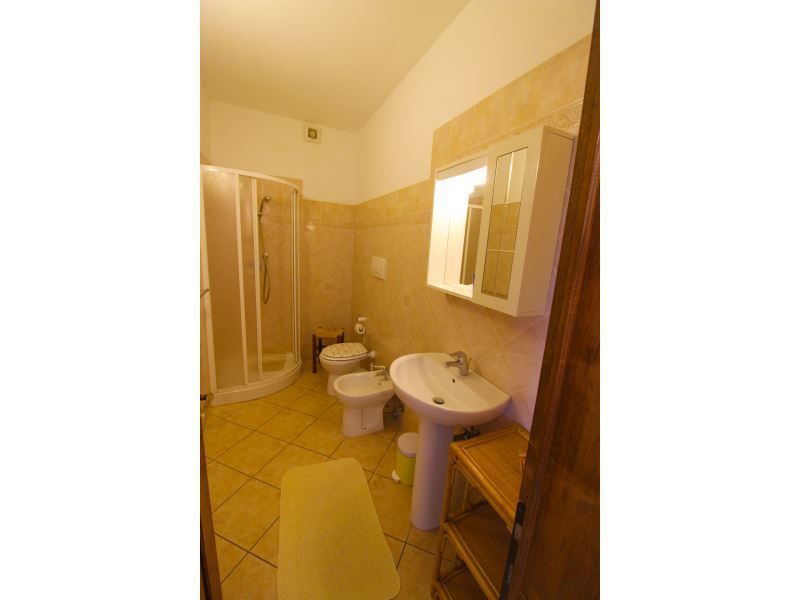 First floor apartment with entrance from external staircase, consisting of large living-dining room with kitchenette, fireplace and sofa, double bedroom, twin bedroom and bathroom with shower.