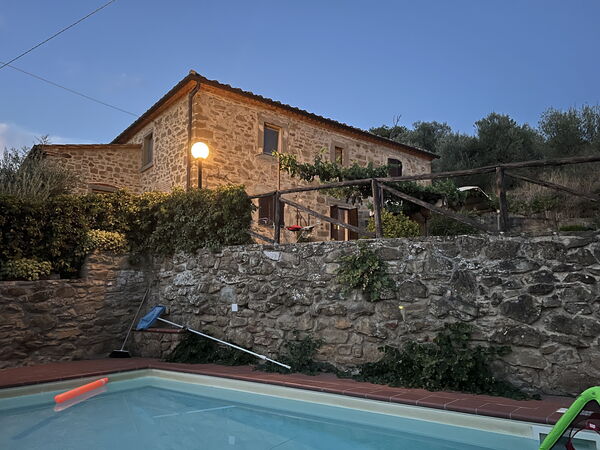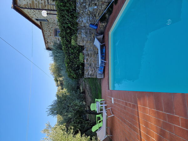 Great location on the mountain, right in an olive grove with great views. Pool and view more beautiful than in the pictures. House also very tastefully decorated in Tuscan style. Only the access to the house is a bit tedious due to the unpaved road.