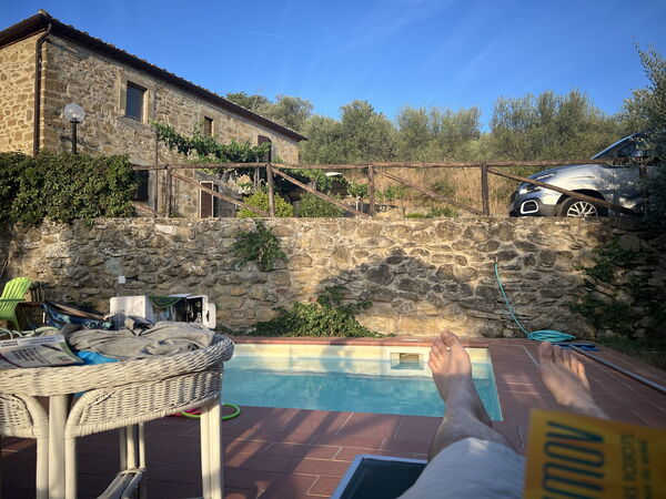 We had a wonderful visit and stay in this villa. The owners were fantastic and went out of their way to be friendly and helpful. Everything was spotless, the views incredible and it was a perfect, central location to everything in the Tuscan area. Photos below show the hill the Villa is on, views from the pool area and kitchen window. Jet Black sparkling night skies, church bells, night sounds and fresh air. It is a lovely place!
