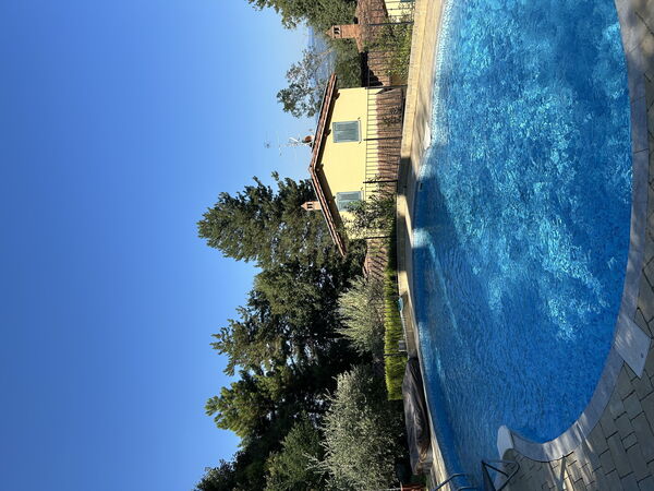 [English translation courtesy of Easy Reserve] Superb house / villa with pool, hot tub and city / countryside views. Very lovingly furnished. Everything available from glasses to dishwasher, washing machine, stove, a total of 3 kitchens, 3 separate units (house 2 and 3 connected by a lockable door). Almost solitary house on a hill near Arezzo. The first approach turned out to be an experience as we took the wrong route. Therefore read the directions carefully, then you will arrive immediately. Had a wonderful vacation. Day trips to Florence, Pisa, Rome, Chinque Terre are quite possible. But relaxing by the pool or strolling through Arezzo is also a nice change. The landlords are very nice and are happy to provide information. We locked ourselves out one evening when they even came at half past eleven and unlocked us. On Saturday they brought us a cake and a liqueur - really nice. They cleaned the pool regularly during our stay. At the beginning there was a welcome basket with various regional foods, masks and disinfectants. The house is very clean. There is nothing wrong with that. We will definitely spend the vacation there again. At the end we wanted to give a tip, which they declined with thanks and said we should buy something else on our way home. The holiday home really looks like the pictures. It is just really worth 5 stars.Vil du anbefale denne ejendom til en ven? Ja