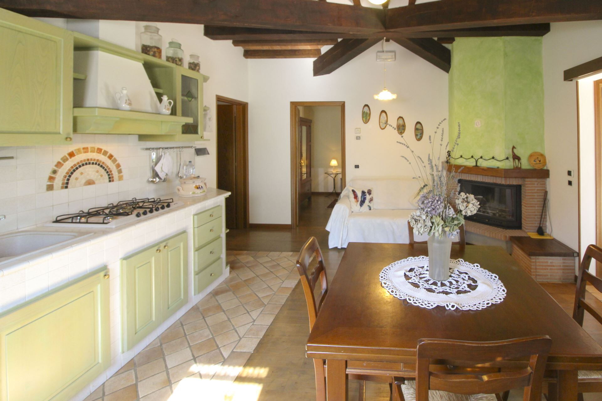 Perhaps it is the well-kept, panoramic garden shaded by tall pines and completely fenced, the lovely private swimming pool (size 6 x 9 m - depth 1.20 m - open from 01st May to 30th September) or perhaps the Jacuzzi (6 seats - extra charge) set among the olive trees...? Or, could it be the very idea of the country villa, its secluded but not isolated location, and the warm atmosphere created inside with pastel colours and rustic style furniture.