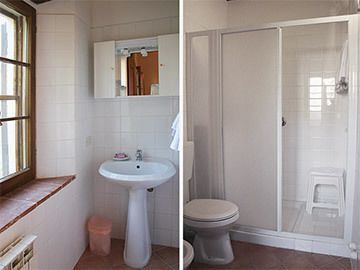 On the first floor. Each apartment has a combined living-room/kitchen and two double bedrooms, each with bathroom (one with shower and one with tub in EAST, both with shower in WEST).