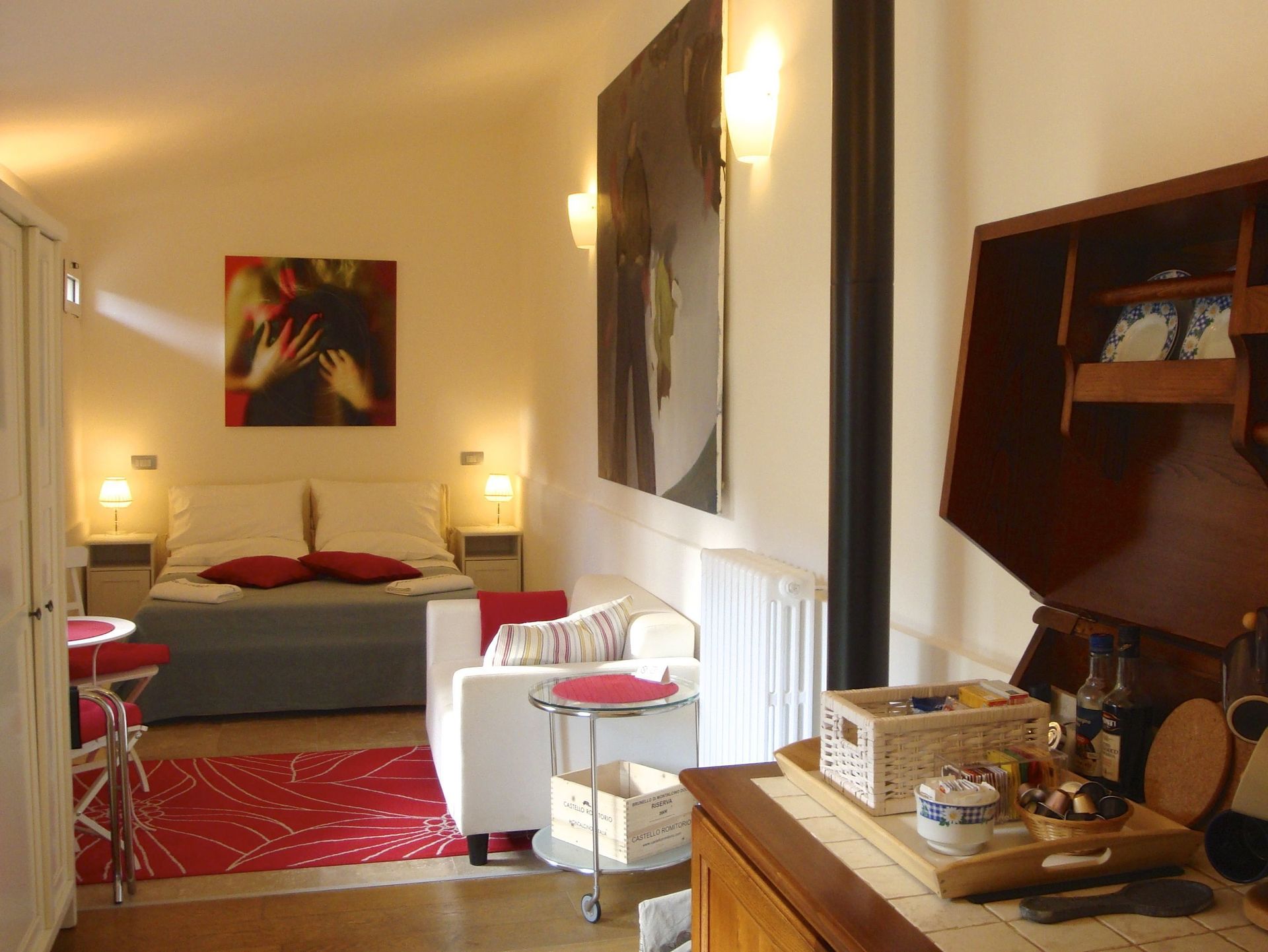 The Suite (1 double bed) ground floor, (sqm 40 ) can host two guests, is very colourful and bright, and is equipped with air conditioning, satellite tv, free wi-fi, fridge, kettle, hair dryer and bathroom with shower in travertine.