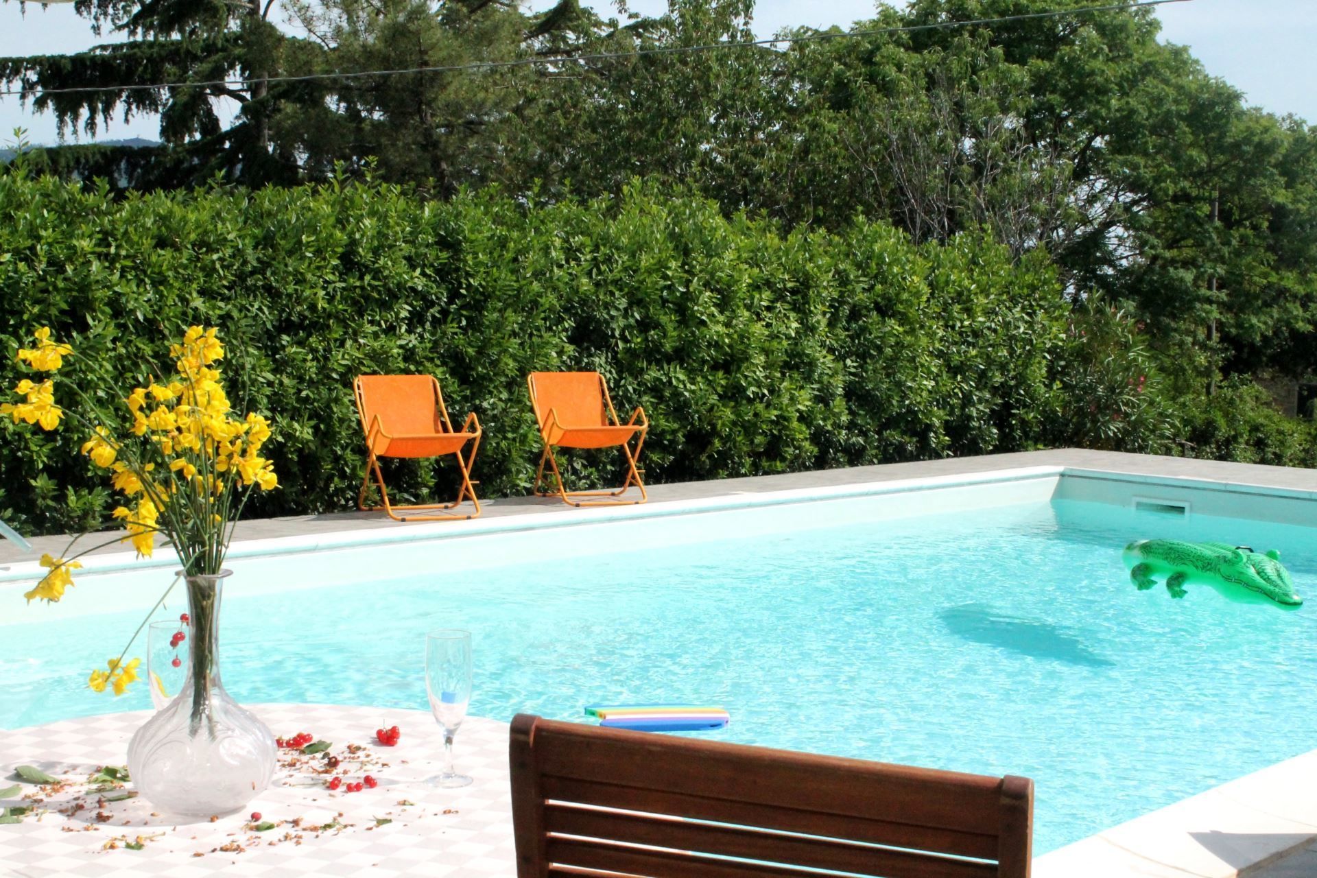 We (2 adults, 2 kids < 3y) have just left after 8 nights at Casa Caldesi, having thoroughly enjoyed our time there. Although initially hard to find, once there we were greeted by our host and we were made most welcome. Our apartment was beautifully decorated, clean and very spacious for the 4 of us. Nice rooms with great beds and typical tuscany furniture. We enjoyed having a "nonna & nonno" as well as a dog and chickens around, and being in an working agricultural grove (olive, fruits, vegetables, wine) added to the attraction for both adults and kids. Despite our lack of Italian and the minimal English/French/Spanish of the "nonna & nonno" we enjoyed fresh eggs, fruits & vegetables nearly every day and besides the clean and wide pool - it all added to the fun of our holiday. We can recommend this place to anyone happy to look after themselves in quiet and beautiful surroundings but somewhat off the beaten track and city (dis-)comforts. Thanks to our gracious hosts - we are looking forward to visit Casa Caldesi again.
