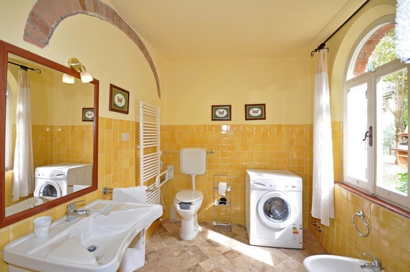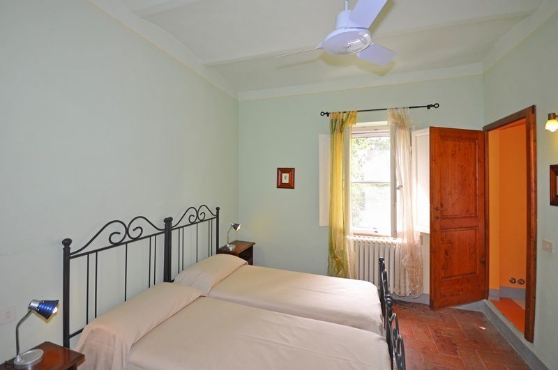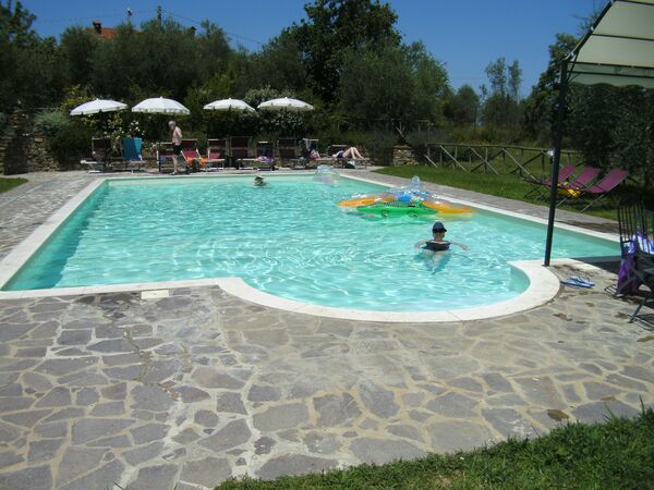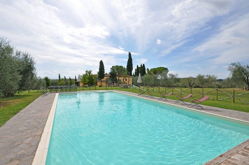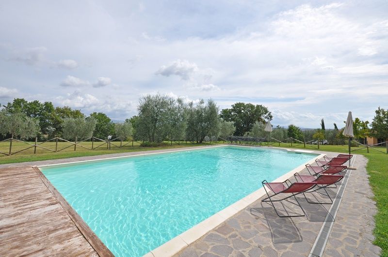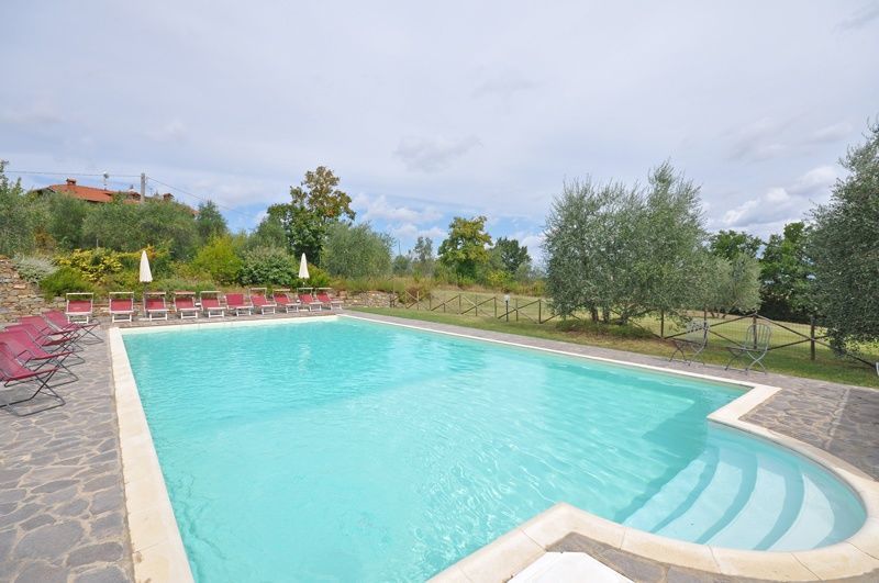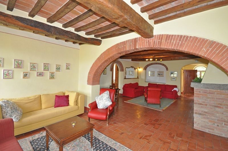 Large independent villa with private pool situated less than 2 km way from the small medieval town of Marciano della Chiana. This villa is part of a large, entirely fenced-in 2 hectare estate with beautiful olives groves, oak, ash and cypress woods. The interiors are welcoming, furnished in a rustic style. Beside the main villa, this property also comprises a small outbuilding for 2 people providing facilities for disabled persons.