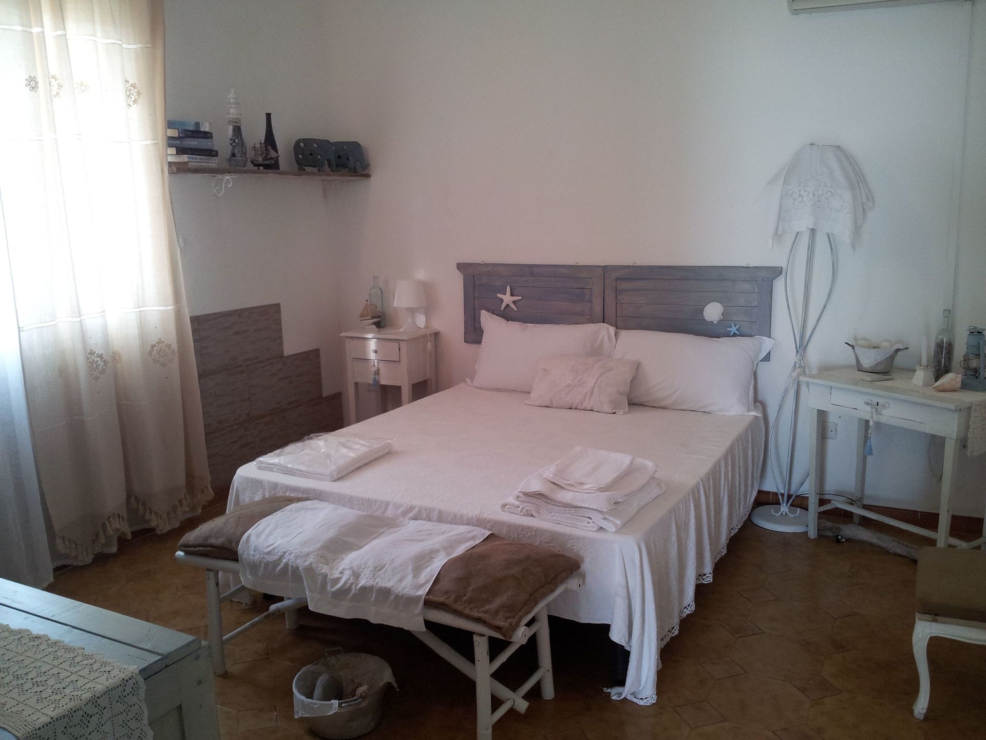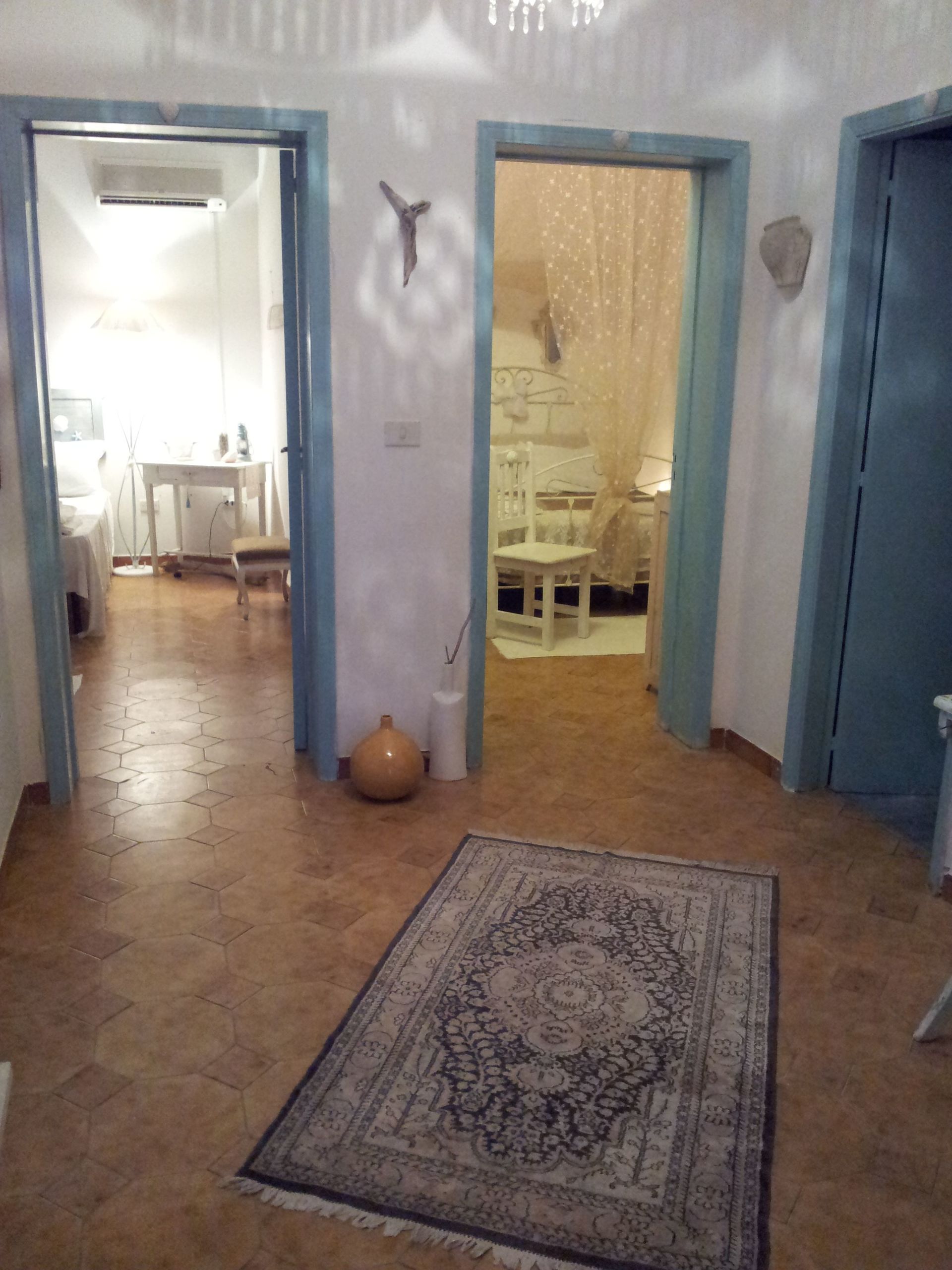 the villa has a large living room with double sofa bed and a kitchen very well equipedd and two double bedrooms ( with air conditioning) and one bathroom with shower.