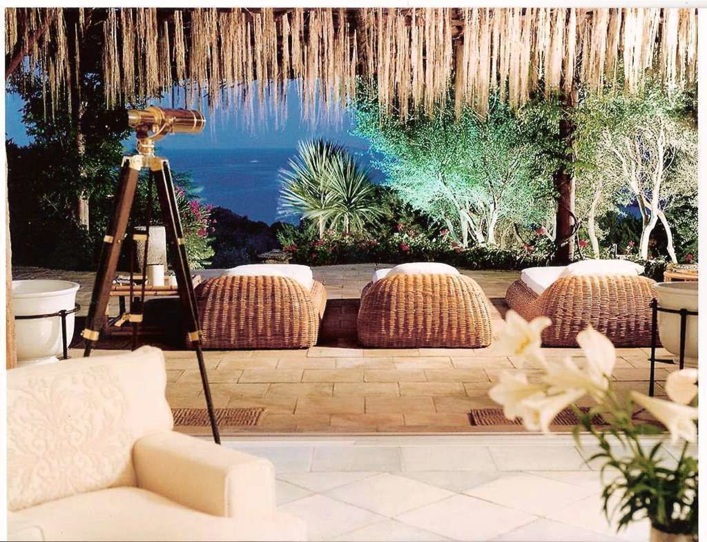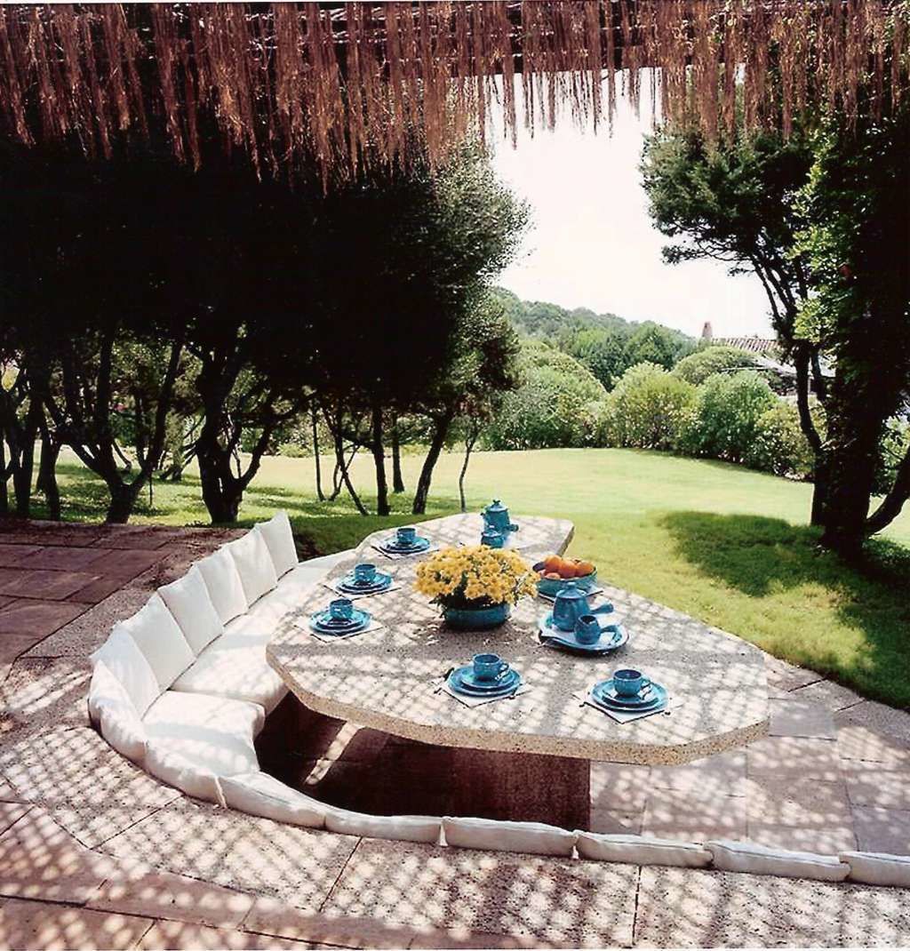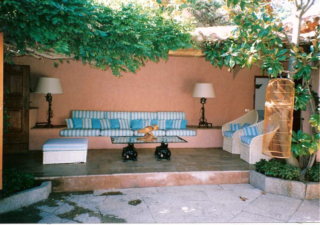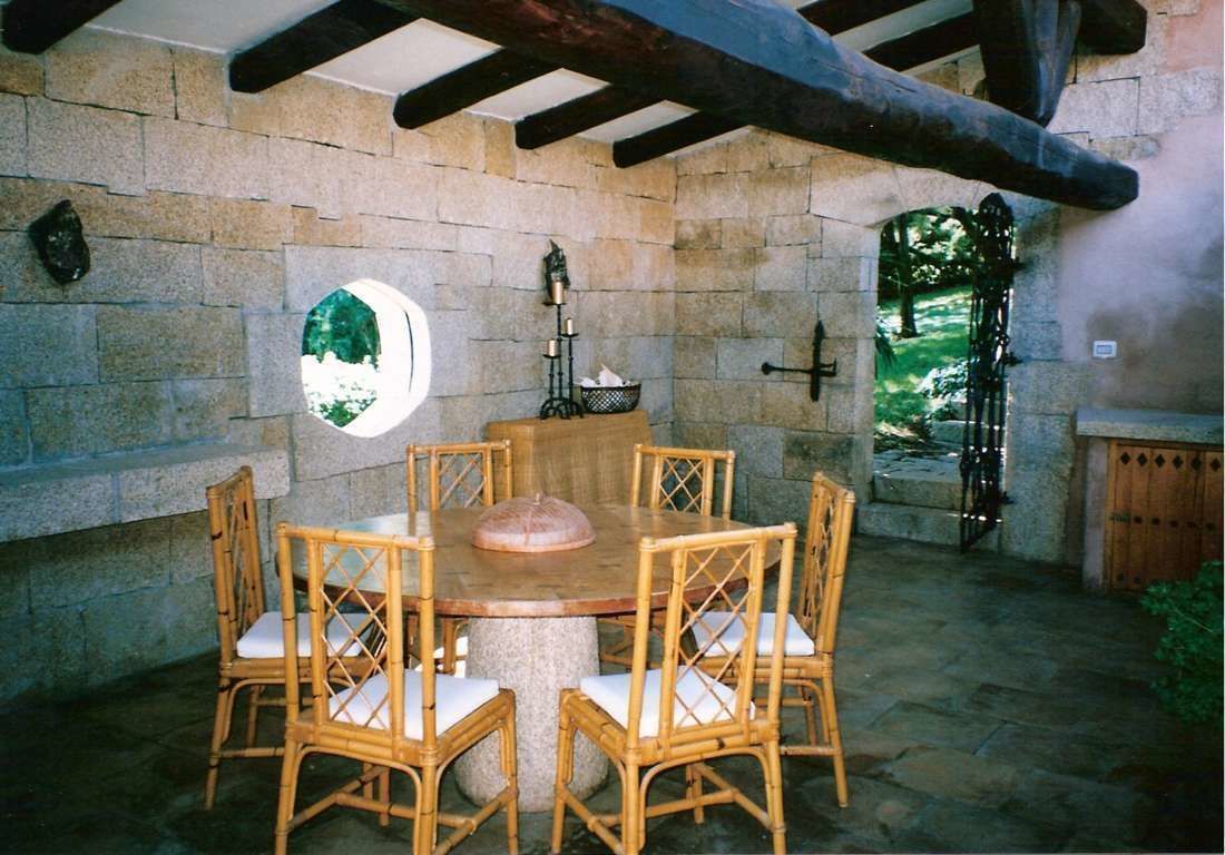 Outside: dining area, lounge area.