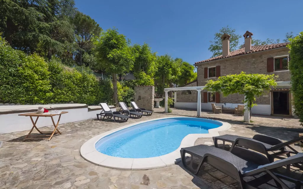Rustikt, komfortabelt hus på landet "Casale Antica Pietra", 400 meter over havets overflade, på 2 etager, fritstående, omgivet af træer og marker. 19 km fra bymidten af Riccione, 18 km fra centrum af Cattolica, uden for byen, 1 km fra bymidten af Gemmano, rolig, solrige beliggenhed, 18 km fra havet, 18 km fra stranden, i det grønne. Til alene benyttelse: grund (indhegnet), park 2'000 m2, pool nyreformet (25 m2, 130 cm dyb, Sæsonbestemt tilgængelighed: 01.Maj. - 14.Okt.). Udendørs brus, terrasse, pergola, havemøbler, legeplads. I huset: bordtennis, cykelrum, vaskemaskine, Opvarmningen betales lokalt. Parkeringsplads ved huset i 10 m. Fødevarebutik 1 km, restaurant 1 km, busstoppested "Zollara" 250 m, banegård "Riccone / Cattolica" 19 km, sandstrand "Riccione / Cattolica" 19 km kiselstenstrand "Baia Vallugola" 26 km (lille). Golfbane 10 km. Nærliggende attraktioner: Grotte di Onferno 6 km, Repubblica di San Marino 12 km, Misano World Circuit 15 km, Gabicce Monte 24 km, Rimini 30 km, Urbino 42 km. Vandrestier Parco del Monte San Bartolo 35 km. Bemærk venligst: bil anbefales. Velegnet for familier. Af- og pålæsning af bagage er mulig ved ferieboligen.