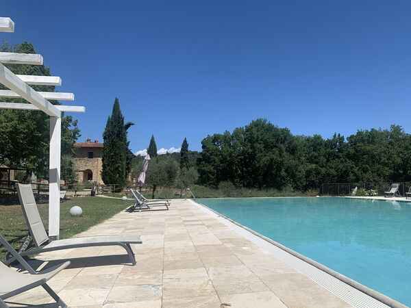 [English translation courtesy of Easy Reserve] Nice holiday home. We had a 3 person cottage. Rooms were spacious. Kitchen complete, only no oven. We had cottage no. 6. This had a lot of shade which was lovely with the hot weather. It is very quiet and you are not bothered by the other guests. Nice pool with plenty of sun loungers. There is a communal washing machine. Friendly owner. The road towards it is very bumpy, but doable. A beautiful piece of Tuscany.Vil du anbefale denne ejendom til en ven? Ja
