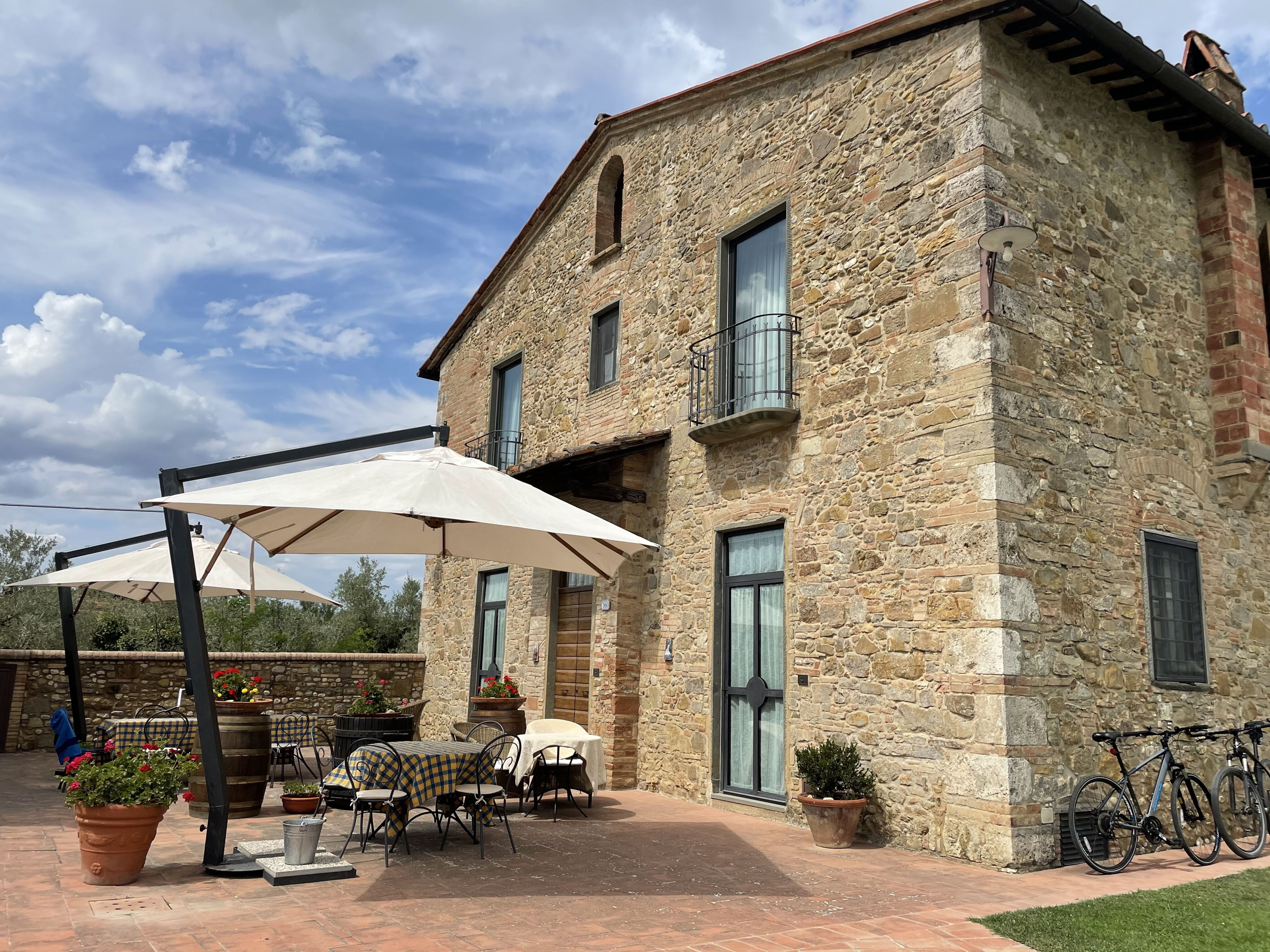 We loved this place! It was the perfect base for a Tuscan holiday. Peaceful and idyllic location yet does not feel isolated. Wine, olive oil and fruit on arrival was a nice touch, as well as filtered still and sparking water available on site with glass bottles provided was great!